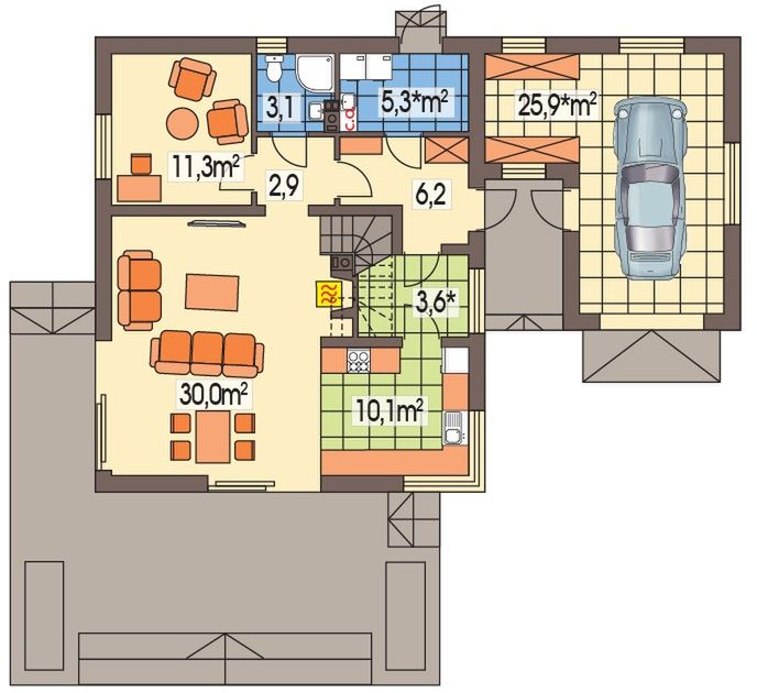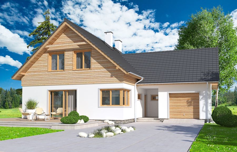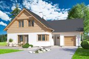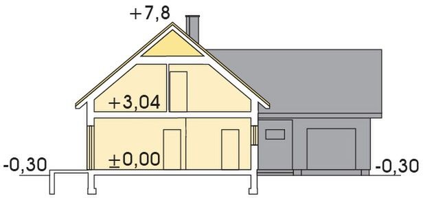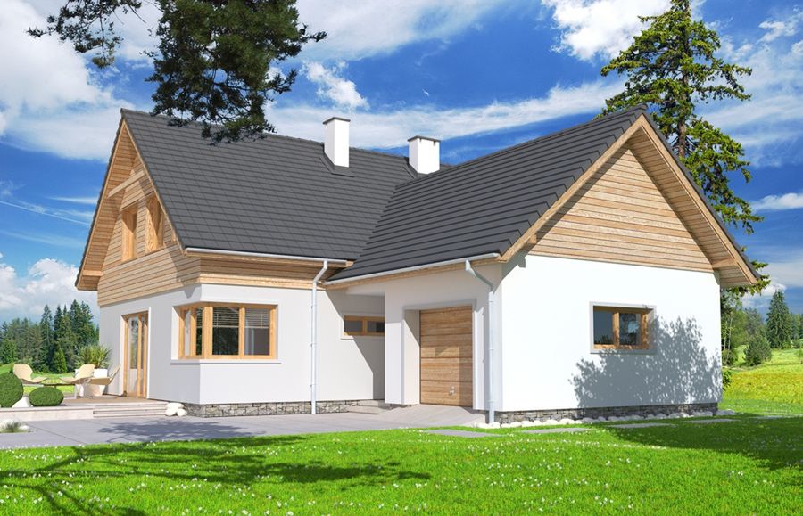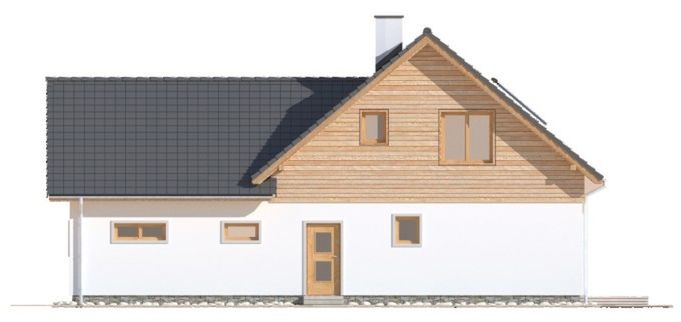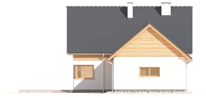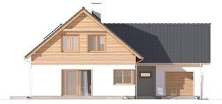 Graficzne opracowanie rzutów poglądowych widocznych na karcie projektu zostało wykonane przez Extradom.pl. Prezentowane przez Extradom.pl wizualizacje wykonane zostały przez autora projektu i należy poczytywać je jedynie za przykład i propozycję wykończenia, wizję architektoniczną autora projektu. Ostateczne wykończenie budynku może nastąpić na wiele sposobów. Szczegółowe rozwiązania zastosowane w oferowanej dokumentacji - w tym również ilość, lokalizacje i wygląd okien, drzwi, kominów - mogą w niewielkim stopniu różnić się od prezentowanej wizualizacji budynku.