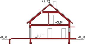 Graficzne opracowanie rzutów poglądowych widocznych na karcie projektu zostało wykonane przez Extradom.pl. Prezentowane przez Extradom.pl wizualizacje wykonane zostały przez autora projektu i należy poczytywać je jedynie za przykład i propozycję wykończenia, wizję architektoniczną autora projektu. Ostateczne wykończenie budynku może nastąpić na wiele sposobów. Szczegółowe rozwiązania zastosowane w oferowanej dokumentacji - w tym również ilość, lokalizacje i wygląd okien, drzwi, kominów - mogą w niewielkim stopniu różnić się od prezentowanej wizualizacji budynku.