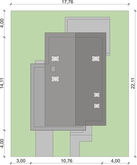 Graficzne opracowanie rzutów poglądowych widocznych na karcie projektu zostało wykonane przez Extradom.pl. Prezentowane przez Extradom.pl wizualizacje wykonane zostały przez autora projektu i należy poczytywać je jedynie za przykład i propozycję wykończenia, wizję architektoniczną autora projektu. Ostateczne wykończenie budynku może nastąpić na wiele sposobów. Szczegółowe rozwiązania zastosowane w oferowanej dokumentacji - w tym również ilość, lokalizacje i wygląd okien, drzwi, kominów - mogą w niewielkim stopniu różnić się od prezentowanej wizualizacji budynku.