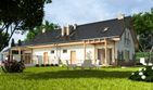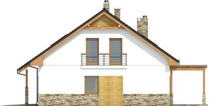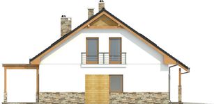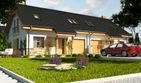 Graficzne opracowanie rzutów poglądowych widocznych na karcie projektu zostało wykonane przez Extradom.pl. Prezentowane przez Extradom.pl wizualizacje wykonane zostały przez autora projektu i należy poczytywać je jedynie za przykład i propozycję wykończenia, wizję architektoniczną autora projektu. Ostateczne wykończenie budynku może nastąpić na wiele sposobów. Szczegółowe rozwiązania zastosowane w oferowanej dokumentacji - w tym również ilość, lokalizacje i wygląd okien, drzwi, kominów - mogą w niewielkim stopniu różnić się od prezentowanej wizualizacji budynku.