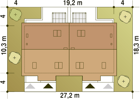 Budynek dwulokalowy posadowiony na wspólnym fundamencie. Jeśli planujesz budowę na osobnych działkach zamów pojedyncze segmenty: podstawa + lustro. Projekt jest w fazie koncepcji. Przy zakupie projektu należy zapłacić 35% zaliczki. Zaliczka jest bezzwrotna w przypadku zwrotu lub rezygnacji z zamówienia.