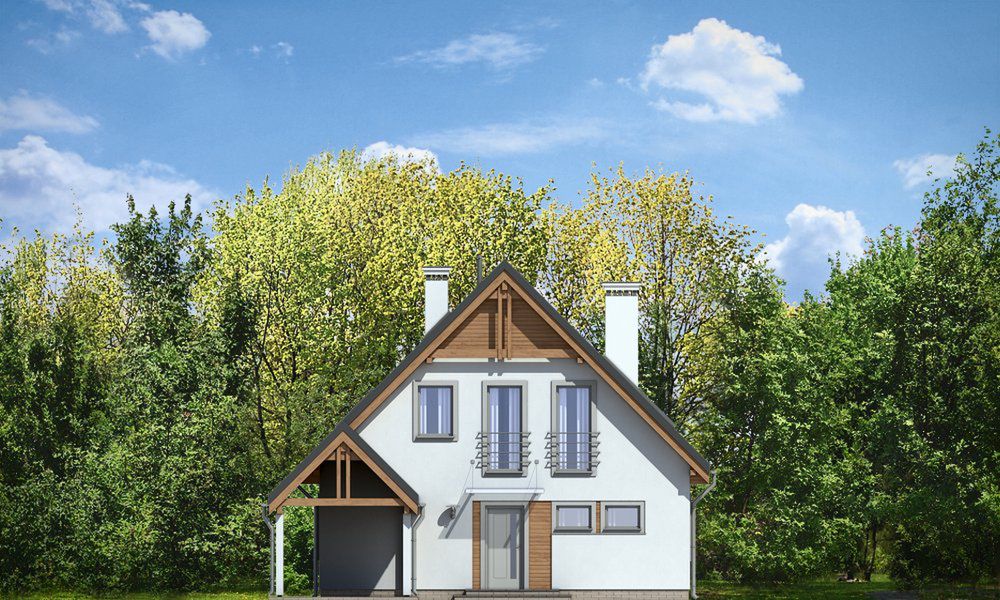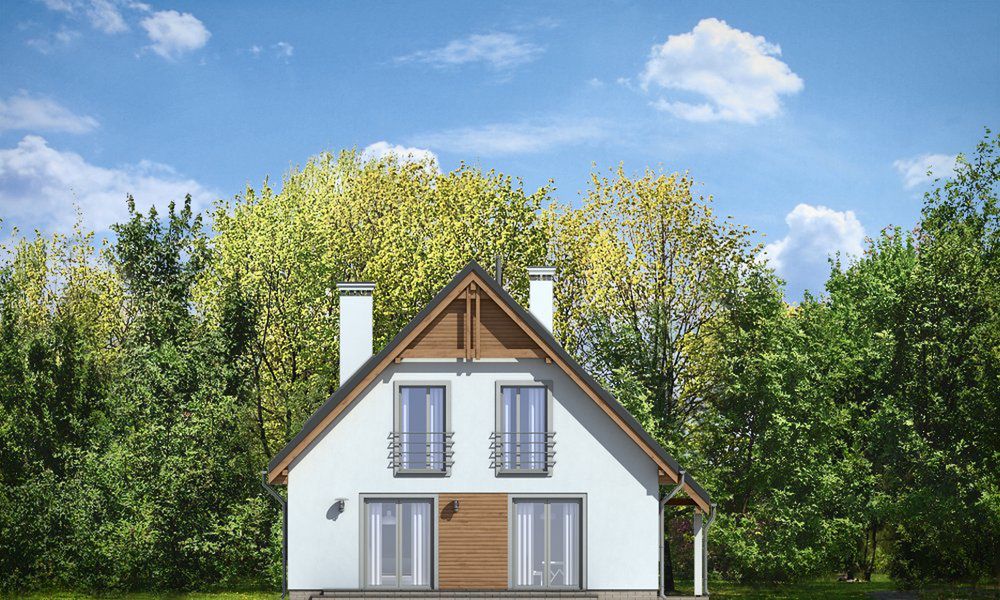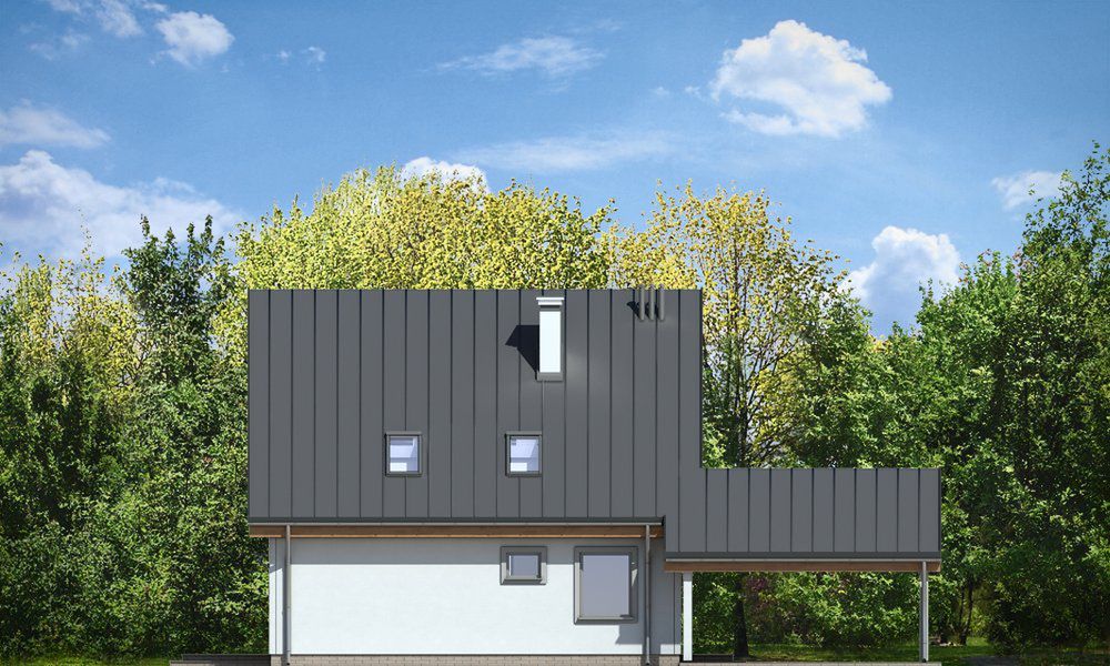 Graficzne opracowanie rzutów poglądowych widocznych na karcie projektu zostało wykonane przez Extradom.pl. Prezentowane przez Extradom.pl wizualizacje wykonane zostały przez autora projektu i należy poczytywać je jedynie za przykład i propozycję wykończenia, wizję architektoniczną autora projektu. Ostateczne wykończenie budynku może nastąpić na wiele sposobów. Szczegółowe rozwiązania zastosowane w oferowanej dokumentacji - w tym również ilość, lokalizacje i wygląd okien, drzwi, kominów - mogą w niewielkim stopniu różnić się od prezentowanej wizualizacji budynku.