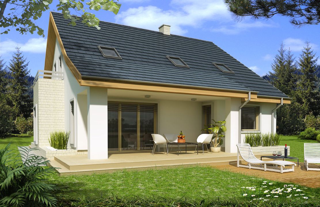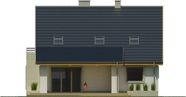 Graficzne opracowanie rzutów poglądowych widocznych na karcie projektu zostało wykonane przez Extradom.pl. Prezentowane przez Extradom.pl wizualizacje wykonane zostały przez autora projektu i należy poczytywać je jedynie za przykład i propozycję wykończenia, wizję architektoniczną autora projektu. Ostateczne wykończenie budynku może nastąpić na wiele sposobów. Szczegółowe rozwiązania zastosowane w oferowanej dokumentacji - w tym również ilość, lokalizacje i wygląd okien, drzwi, kominów - mogą w niewielkim stopniu różnić się od prezentowanej wizualizacji budynku.