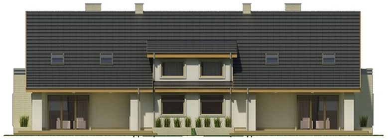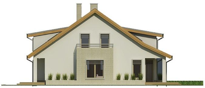 Graficzne opracowanie rzutów poglądowych widocznych na karcie projektu zostało wykonane przez Extradom.pl. Prezentowane przez Extradom.pl wizualizacje wykonane zostały przez autora projektu i należy poczytywać je jedynie za przykład i propozycję wykończenia, wizję architektoniczną autora projektu. Ostateczne wykończenie budynku może nastąpić na wiele sposobów. Szczegółowe rozwiązania zastosowane w oferowanej dokumentacji - w tym również ilość, lokalizacje i wygląd okien, drzwi, kominów - mogą w niewielkim stopniu różnić się od prezentowanej wizualizacji budynku.