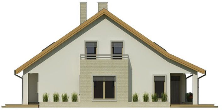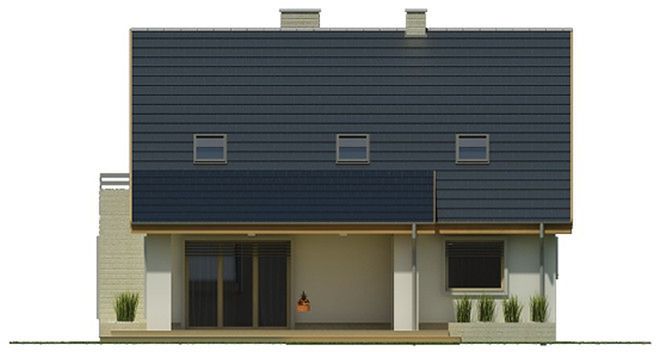 Graficzne opracowanie rzutów poglądowych widocznych na karcie projektu zostało wykonane przez Extradom.pl. Prezentowane przez Extradom.pl wizualizacje wykonane zostały przez autora projektu i należy poczytywać je jedynie za przykład i propozycję wykończenia, wizję architektoniczną autora projektu. Ostateczne wykończenie budynku może nastąpić na wiele sposobów. Szczegółowe rozwiązania zastosowane w oferowanej dokumentacji - w tym również ilość, lokalizacje i wygląd okien, drzwi, kominów - mogą w niewielkim stopniu różnić się od prezentowanej wizualizacji budynku.