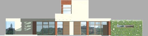 Dom zaprojektowano w technologii murowej ze stropami żelbetowymi. Schody wewnętrzne drewniane. Stropodach kryty folią termozgrzewalną. Elewację wykonano z tynku o delikatnej fakturze oraz okładzin drewnianych i elementów ze zmatowionej stali nierdzewnej. Stolarka okienna drewniana.