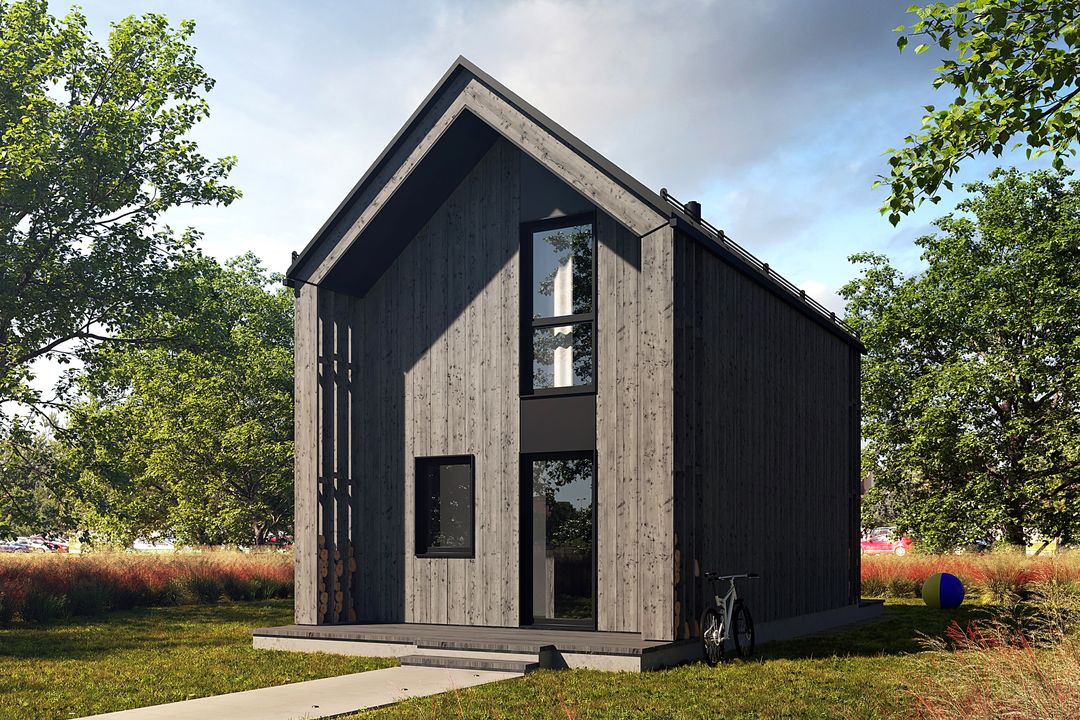 fundamenty: płyta fundamentowa; ściany zewnętrzne: ściana szkieletowa drewniana; ściany wewnętrzne: ściana szkieletowa drewniana; strop: drewniany; konstrukcja i pokrycie dachu: Krewniana krokwiowa, blacha; elewacja: tynk; deska;