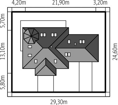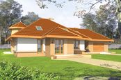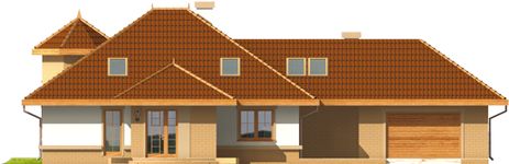 Graficzne opracowanie rzutów poglądowych widocznych na karcie projektu zostało wykonane przez Extradom.pl. Prezentowane przez Extradom.pl wizualizacje wykonane zostały przez autora projektu i należy poczytywać je jedynie za przykład i propozycję wykończenia, wizję architektoniczną autora projektu. Ostateczne wykończenie budynku może nastąpić na wiele sposobów. Szczegółowe rozwiązania zastosowane w oferowanej dokumentacji - w tym również ilość, lokalizacje i wygląd okien, drzwi, kominów - mogą w niewielkim stopniu różnić się od prezentowanej wizualizacji budynku.