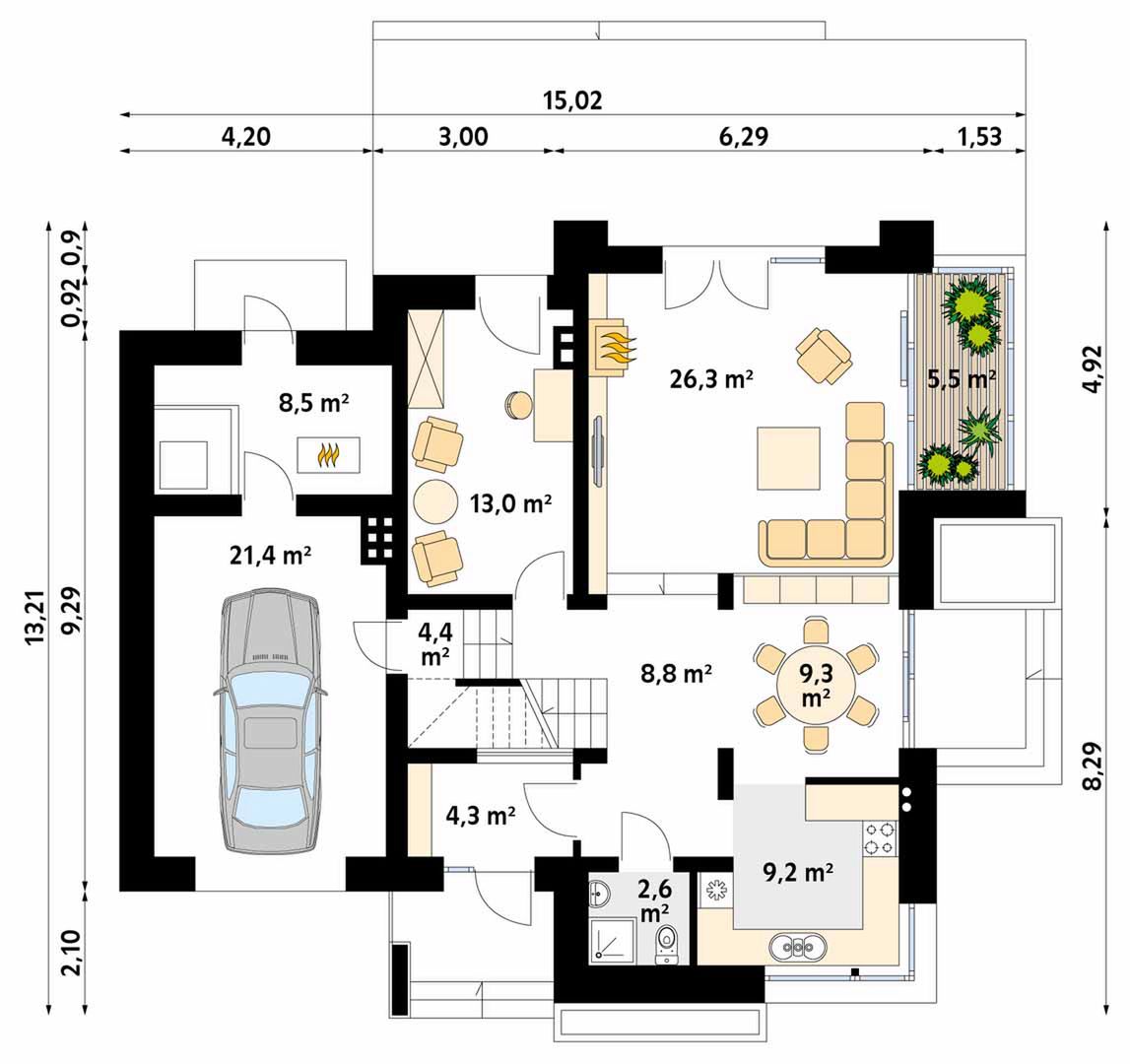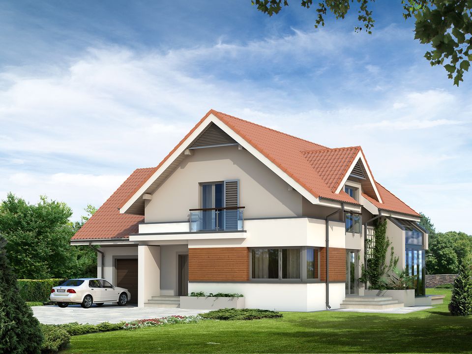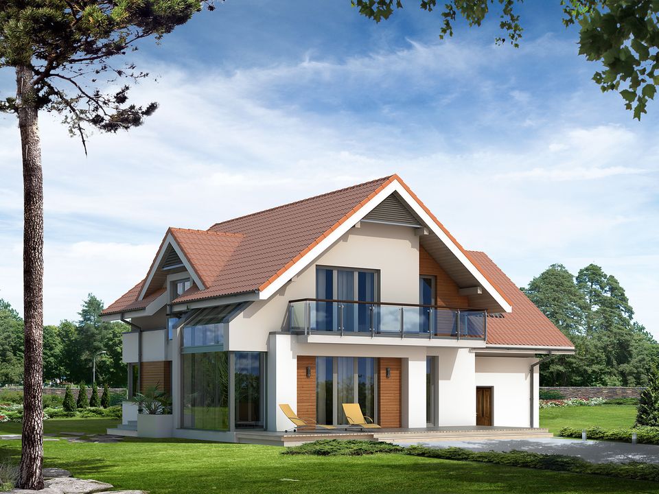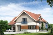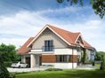 Graficzne opracowanie rzutów poglądowych widocznych na karcie projektu zostało wykonane przez Extradom.pl. Prezentowane przez Extradom.pl wizualizacje wykonane zostały przez autora projektu i należy poczytywać je jedynie za przykład i propozycję wykończenia, wizję architektoniczną autora projektu. Ostateczne wykończenie budynku może nastąpić na wiele sposobów. Szczegółowe rozwiązania zastosowane w oferowanej dokumentacji - w tym również ilość, lokalizacje i wygląd okien, drzwi, kominów - mogą w niewielkim stopniu różnić się od prezentowanej wizualizacji budynku.