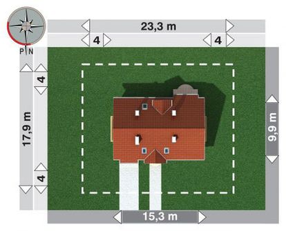 Graficzne opracowanie rzutów poglądowych widocznych na karcie projektu zostało wykonane przez Extradom.pl. Prezentowane przez Extradom.pl wizualizacje wykonane zostały przez autora projektu i należy poczytywać je jedynie za przykład i propozycję wykończenia, wizję architektoniczną autora projektu. Ostateczne wykończenie budynku może nastąpić na wiele sposobów. Szczegółowe rozwiązania zastosowane w oferowanej dokumentacji - w tym również ilość, lokalizacje i wygląd okien, drzwi, kominów - mogą w niewielkim stopniu różnić się od prezentowanej wizualizacji budynku.