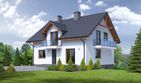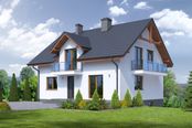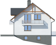 Graficzne opracowanie rzutów poglądowych widocznych na karcie projektu zostało wykonane przez Extradom.pl. Prezentowane przez Extradom.pl wizualizacje wykonane zostały przez autora projektu i należy poczytywać je jedynie za przykład i propozycję wykończenia, wizję architektoniczną autora projektu. Ostateczne wykończenie budynku może nastąpić na wiele sposobów. Szczegółowe rozwiązania zastosowane w oferowanej dokumentacji - w tym również ilość, lokalizacje i wygląd okien, drzwi, kominów - mogą w niewielkim stopniu różnić się od prezentowanej wizualizacji budynku.