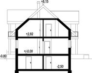 Wysokość ścianki kolankowej: 1.1 m. Strop: płyta żelbetowa. Pokrycie dachu: dachówka ceramiczna. Ściany zewnętrzne: pustaki ceramiczne + styropian. Ściany wewnętrzne: pustaki ceramiczne. Typ ogrzewania: kocioł gazowy lub kocioł na paliwo stałe. Inne: okna dachowe Fakro Greenview, drzwi zewnętrzne, wewnętrzne i brama garażowa Hörmann.