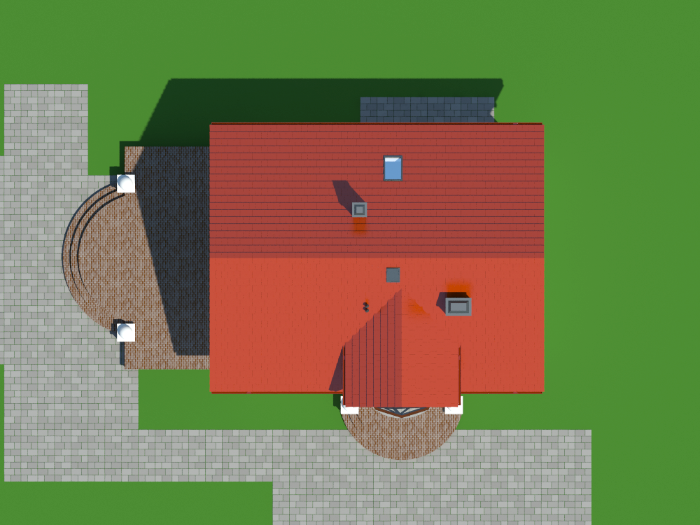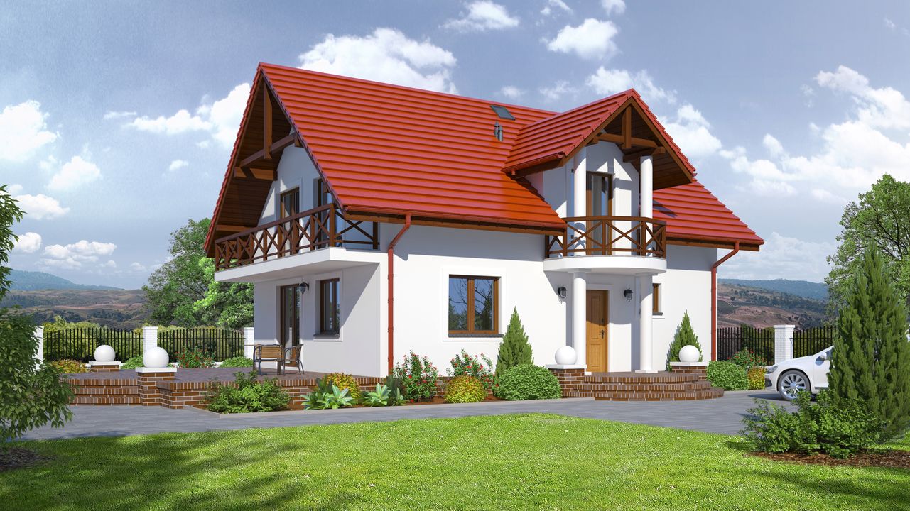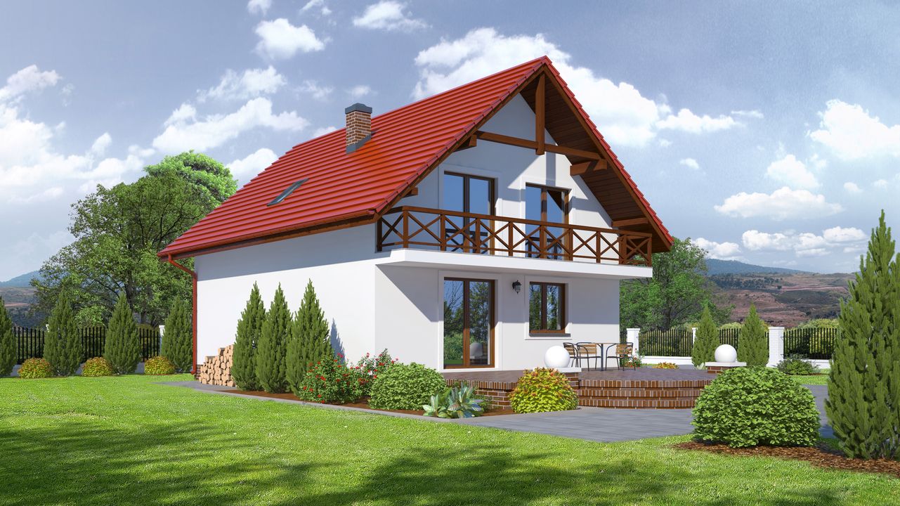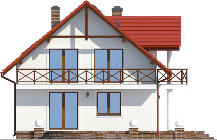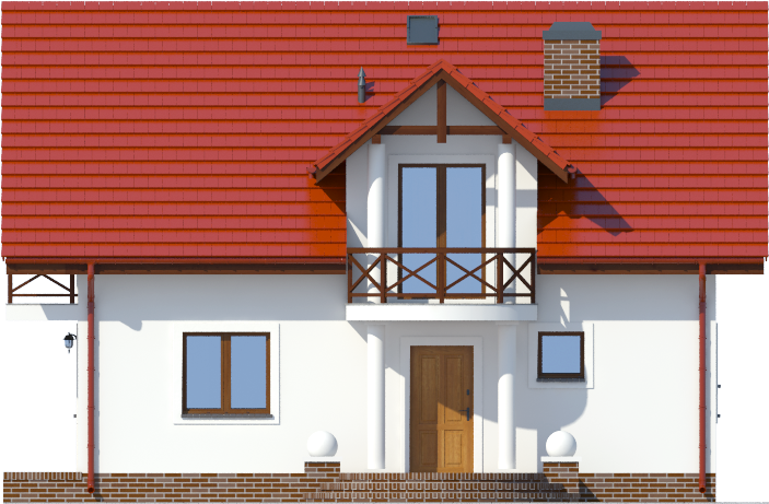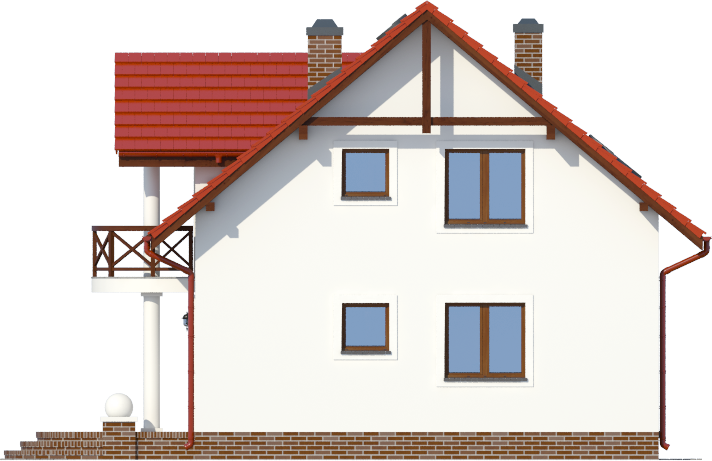 Graficzne opracowanie rzutów poglądowych widocznych na karcie projektu zostało wykonane przez Extradom.pl. Prezentowane przez Extradom.pl wizualizacje wykonane zostały przez autora projektu i należy poczytywać je jedynie za przykład i propozycję wykończenia, wizję architektoniczną autora projektu. Ostateczne wykończenie budynku może nastąpić na wiele sposobów. Szczegółowe rozwiązania zastosowane w oferowanej dokumentacji - w tym również ilość, lokalizacje i wygląd okien, drzwi, kominów - mogą w niewielkim stopniu różnić się od prezentowanej wizualizacji budynku.