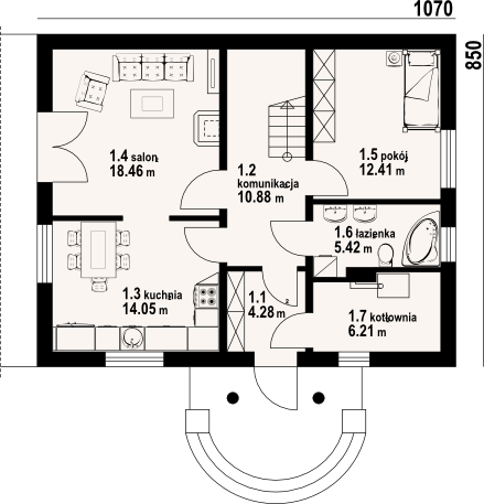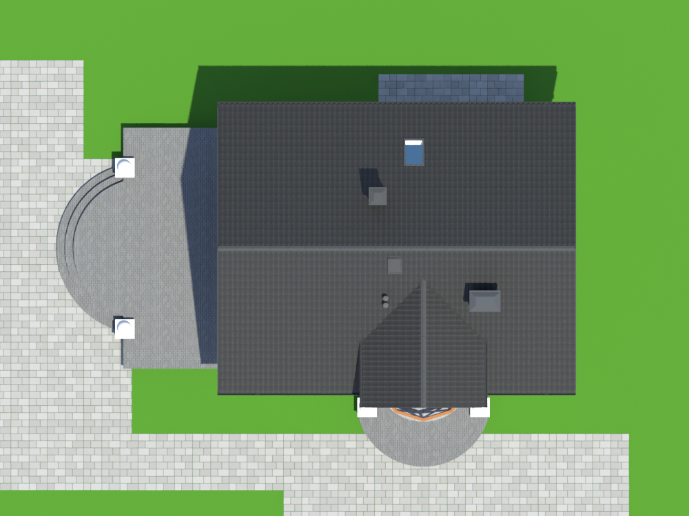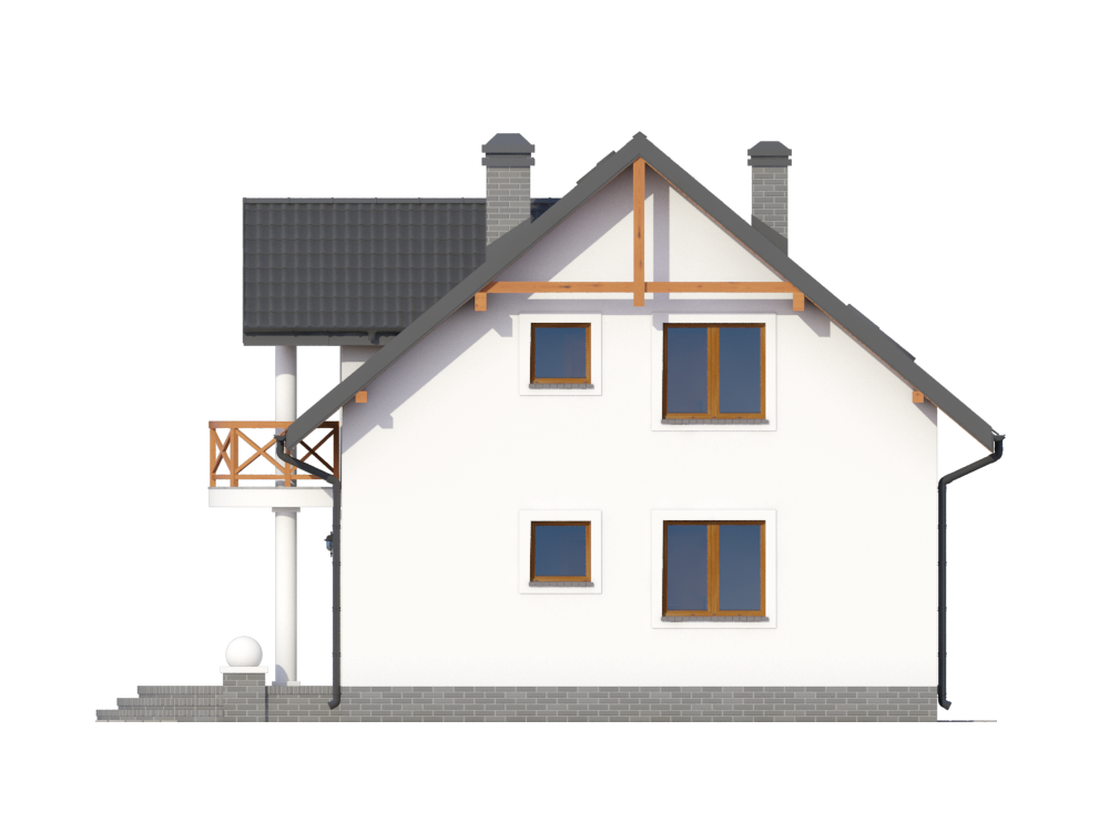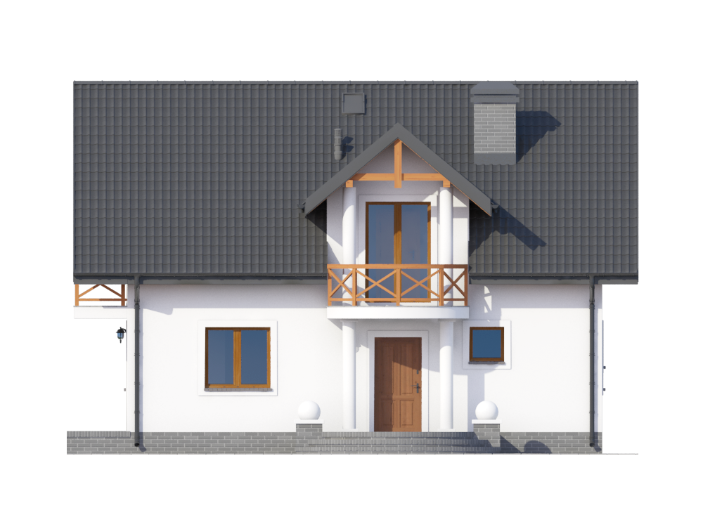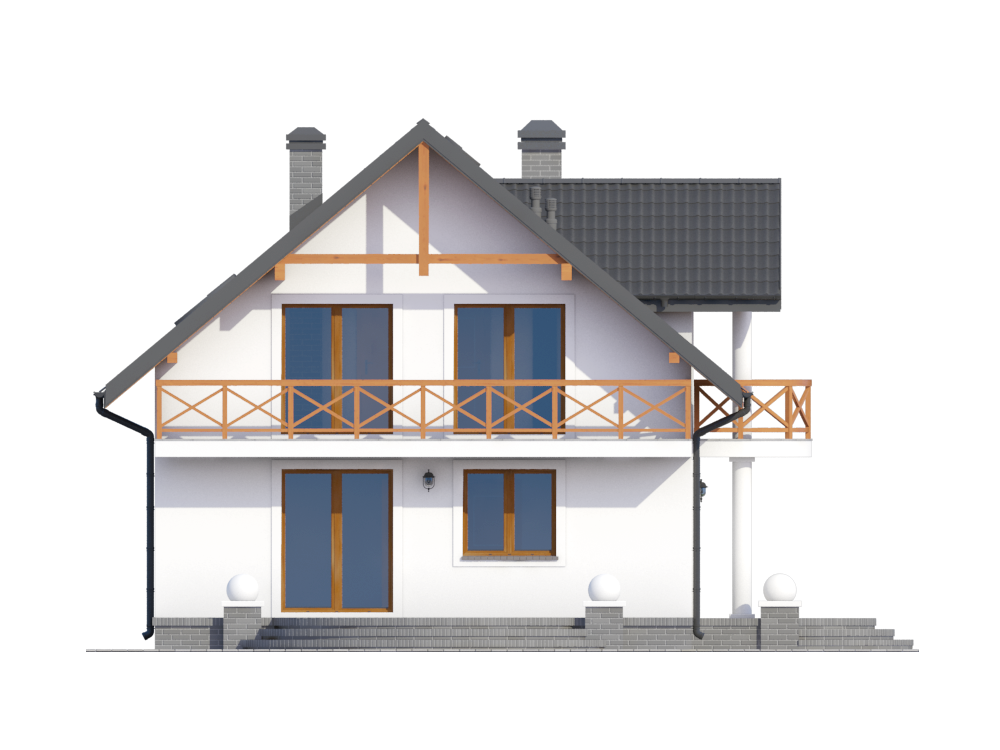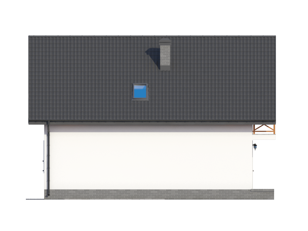 Graficzne opracowanie rzutów poglądowych widocznych na karcie projektu zostało wykonane przez Extradom.pl. Prezentowane przez Extradom.pl wizualizacje wykonane zostały przez autora projektu i należy poczytywać je jedynie za przykład i propozycję wykończenia, wizję architektoniczną autora projektu. Ostateczne wykończenie budynku może nastąpić na wiele sposobów. Szczegółowe rozwiązania zastosowane w oferowanej dokumentacji - w tym również ilość, lokalizacje i wygląd okien, drzwi, kominów - mogą w niewielkim stopniu różnić się od prezentowanej wizualizacji budynku.