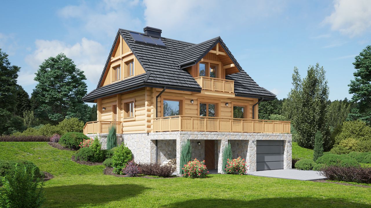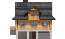 Wysokość ścianki kolankowej: 0.78 m. Strop: żelbet + drewniany. Pokrycie dachu: dachówka gontopodobna Gerard Corona. Ściany zewnętrzne: płazy drewniane + wełna mineralna + deska. Ściany wewnętrzne: płazy drewniane. Typ ogrzewania: kocioł gazowy. Instalacje dodatkowe: instalacja solarna, pompa ciepła. Inne: brama garażowa i drzwi Hörmann.