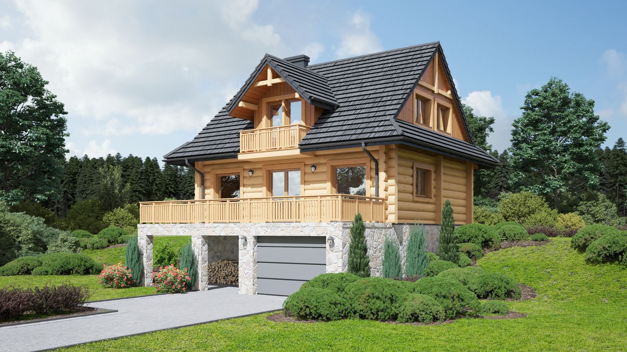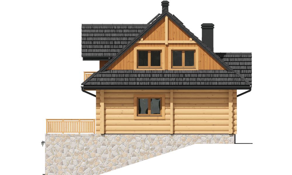 Graficzne opracowanie rzutów poglądowych widocznych na karcie projektu zostało wykonane przez Extradom.pl. Prezentowane przez Extradom.pl wizualizacje wykonane zostały przez autora projektu i należy poczytywać je jedynie za przykład i propozycję wykończenia, wizję architektoniczną autora projektu. Ostateczne wykończenie budynku może nastąpić na wiele sposobów. Szczegółowe rozwiązania zastosowane w oferowanej dokumentacji - w tym również ilość, lokalizacje i wygląd okien, drzwi, kominów - mogą w niewielkim stopniu różnić się od prezentowanej wizualizacji budynku.