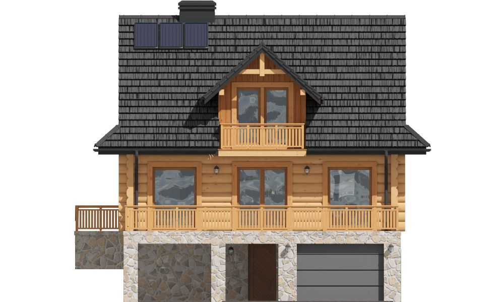 Wysokość ścianki kolankowej: 0.78 m. Strop: żelbet + drewniany. Pokrycie dachu: dachówka gontopodobna Gerard Corona. Ściany zewnętrzne: płazy drewniane + wełna mineralna + deska. Ściany wewnętrzne: płazy drewniane. Typ ogrzewania: kocioł gazowy. Instalacje dodatkowe: instalacja solarna. Inne: brama garażowa i drzwi Hörmann.