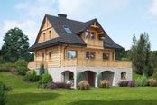 Wysokość ścianki kolankowej: 0.81 m. Strop: drewniany. Pokrycie dachu: dachówka gontopodobna Gerard Corona. Ściany zewnętrzne: płazy drewniane + wełna mineralna + deska. Ściany wewnętrzne: płazy drewniane. Typ ogrzewania: kocioł gazowy lub kocioł na paliwo stałe. Inne: okna połaciowe Fakro.