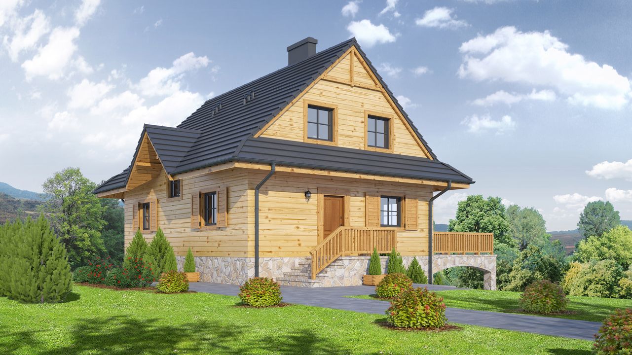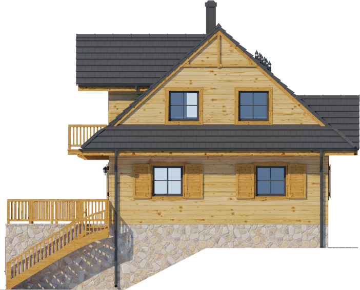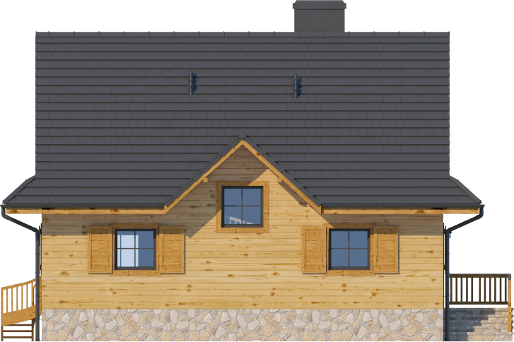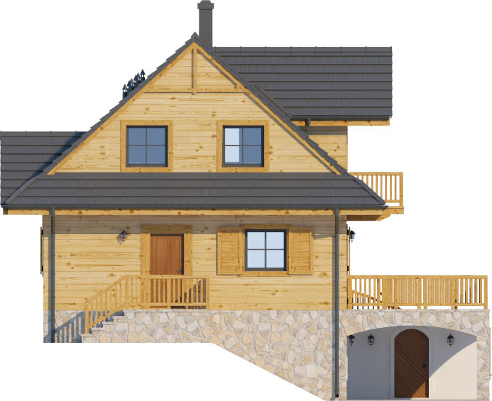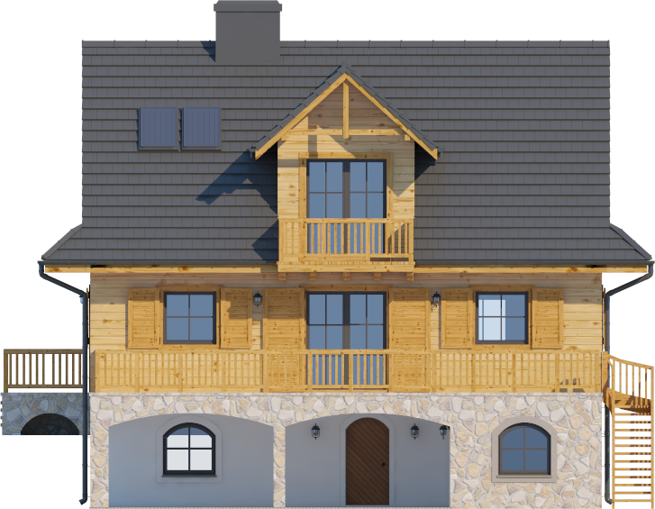 Graficzne opracowanie rzutów poglądowych widocznych na karcie projektu zostało wykonane przez Extradom.pl. Prezentowane przez Extradom.pl wizualizacje wykonane zostały przez autora projektu i należy poczytywać je jedynie za przykład i propozycję wykończenia, wizję architektoniczną autora projektu. Ostateczne wykończenie budynku może nastąpić na wiele sposobów. Szczegółowe rozwiązania zastosowane w oferowanej dokumentacji - w tym również ilość, lokalizacje i wygląd okien, drzwi, kominów - mogą w niewielkim stopniu różnić się od prezentowanej wizualizacji budynku.