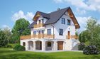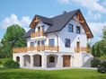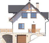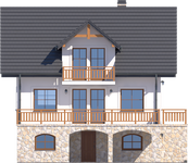 Graficzne opracowanie rzutów poglądowych widocznych na karcie projektu zostało wykonane przez Extradom.pl. Prezentowane przez Extradom.pl wizualizacje wykonane zostały przez autora projektu i należy poczytywać je jedynie za przykład i propozycję wykończenia, wizję architektoniczną autora projektu. Ostateczne wykończenie budynku może nastąpić na wiele sposobów. Szczegółowe rozwiązania zastosowane w oferowanej dokumentacji - w tym również ilość, lokalizacje i wygląd okien, drzwi, kominów - mogą w niewielkim stopniu różnić się od prezentowanej wizualizacji budynku.