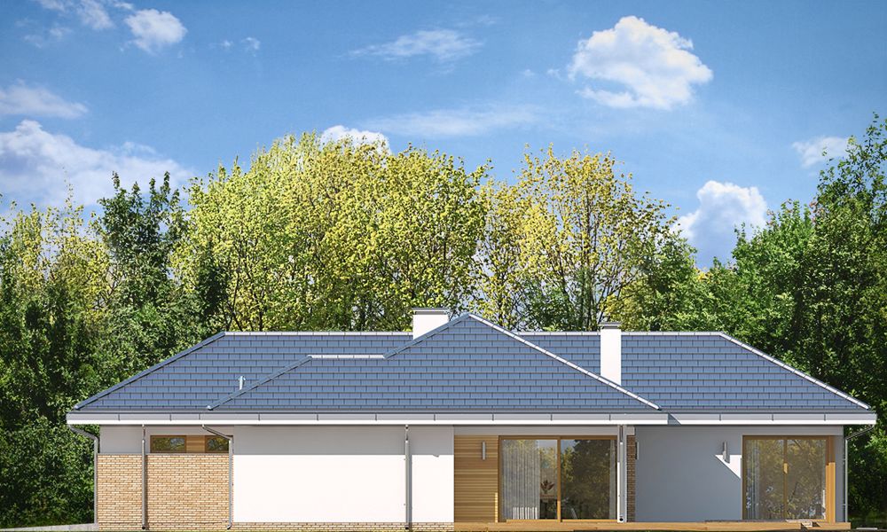 Graficzne opracowanie rzutów poglądowych widocznych na karcie projektu zostało wykonane przez Extradom.pl. Prezentowane przez Extradom.pl wizualizacje wykonane zostały przez autora projektu i należy poczytywać je jedynie za przykład i propozycję wykończenia, wizję architektoniczną autora projektu. Ostateczne wykończenie budynku może nastąpić na wiele sposobów. Szczegółowe rozwiązania zastosowane w oferowanej dokumentacji - w tym również ilość, lokalizacje i wygląd okien, drzwi, kominów - mogą w niewielkim stopniu różnić się od prezentowanej wizualizacji budynku.