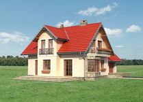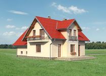 Graficzne opracowanie rzutów poglądowych widocznych na karcie projektu zostało wykonane przez Extradom.pl. Prezentowane przez Extradom.pl wizualizacje wykonane zostały przez autora projektu i należy poczytywać je jedynie za przykład i propozycję wykończenia, wizję architektoniczną autora projektu. Ostateczne wykończenie budynku może nastąpić na wiele sposobów. Szczegółowe rozwiązania zastosowane w oferowanej dokumentacji - w tym również ilość, lokalizacje i wygląd okien, drzwi, kominów - mogą w niewielkim stopniu różnić się od prezentowanej wizualizacji budynku.