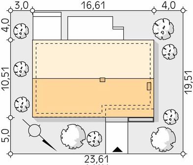 Graficzne opracowanie rzutów poglądowych widocznych na karcie projektu zostało wykonane przez Extradom.pl. Prezentowane przez Extradom.pl wizualizacje wykonane zostały przez autora projektu i należy poczytywać je jedynie za przykład i propozycję wykończenia, wizję architektoniczną autora projektu. Ostateczne wykończenie budynku może nastąpić na wiele sposobów. Szczegółowe rozwiązania zastosowane w oferowanej dokumentacji - w tym również ilość, lokalizacje i wygląd okien, drzwi, kominów - mogą w niewielkim stopniu różnić się od prezentowanej wizualizacji budynku.