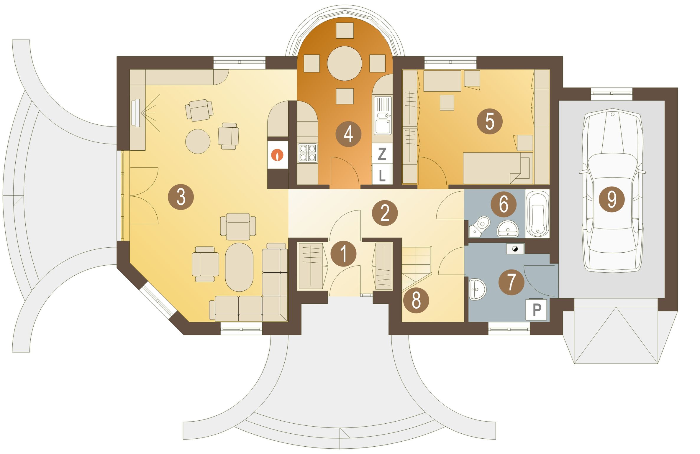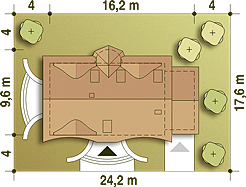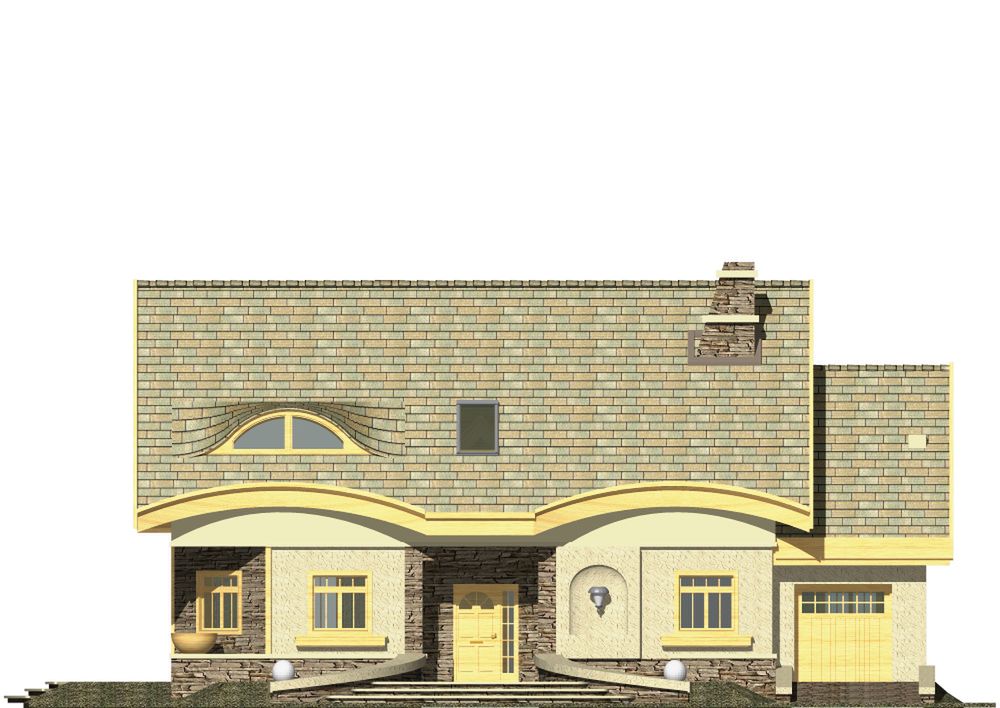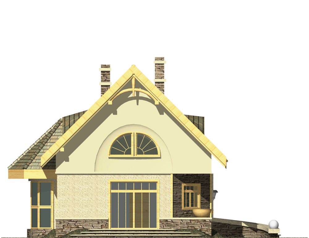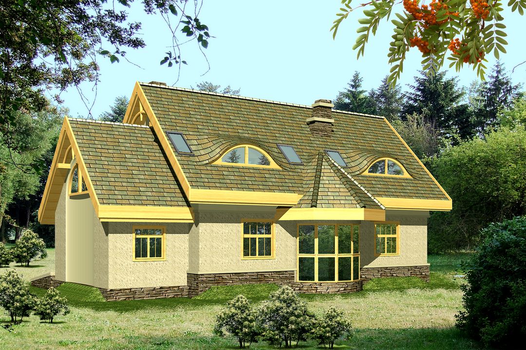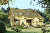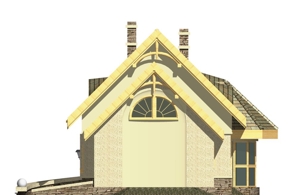 Graficzne opracowanie rzutów poglądowych widocznych na karcie projektu zostało wykonane przez Extradom.pl. Prezentowane przez Extradom.pl wizualizacje wykonane zostały przez autora projektu i należy poczytywać je jedynie za przykład i propozycję wykończenia, wizję architektoniczną autora projektu. Ostateczne wykończenie budynku może nastąpić na wiele sposobów. Szczegółowe rozwiązania zastosowane w oferowanej dokumentacji - w tym również ilość, lokalizacje i wygląd okien, drzwi, kominów - mogą w niewielkim stopniu różnić się od prezentowanej wizualizacji budynku.