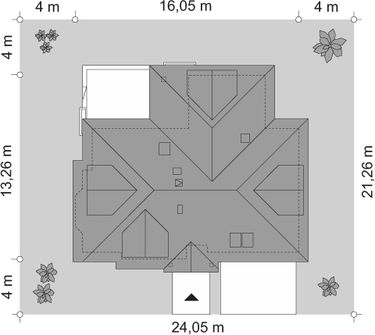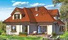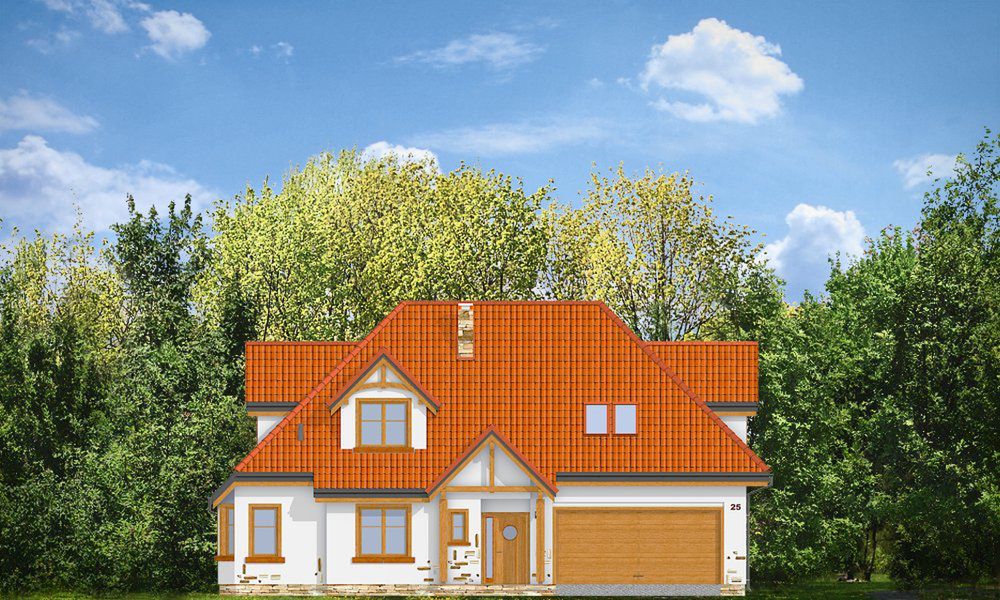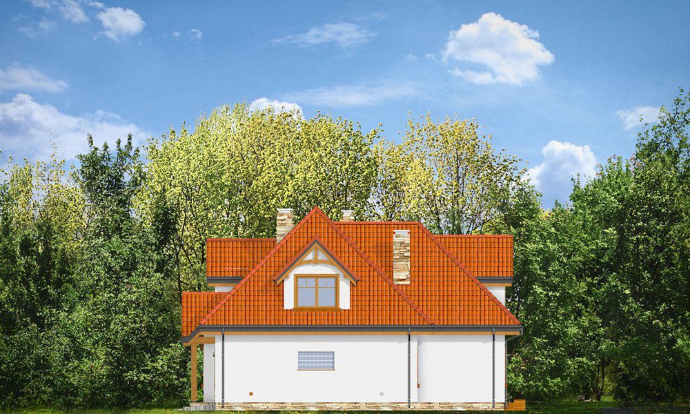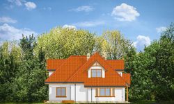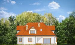 Graficzne opracowanie rzutów poglądowych widocznych na karcie projektu zostało wykonane przez Extradom.pl. Prezentowane przez Extradom.pl wizualizacje wykonane zostały przez autora projektu i należy poczytywać je jedynie za przykład i propozycję wykończenia, wizję architektoniczną autora projektu. Ostateczne wykończenie budynku może nastąpić na wiele sposobów. Szczegółowe rozwiązania zastosowane w oferowanej dokumentacji - w tym również ilość, lokalizacje i wygląd okien, drzwi, kominów - mogą w niewielkim stopniu różnić się od prezentowanej wizualizacji budynku.