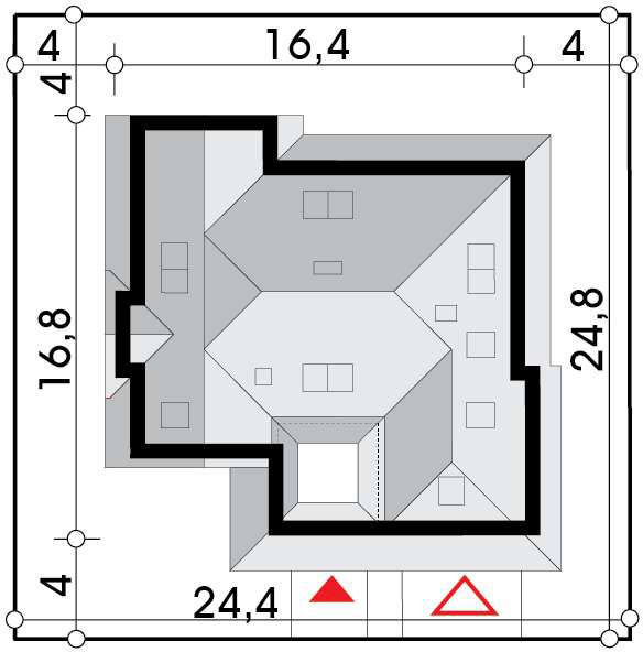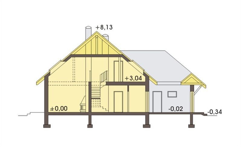 Strop: gęstożebrowy Teriva I. Ściany zewnętrzne: gazobeton 24cm + styropian Termonium Fasada 12cm. Pokrycie dachowe: dachówka ceramiczna. Ogrzewanie: gaz / paliwo stałe. Okna połaciowe: Velux.