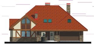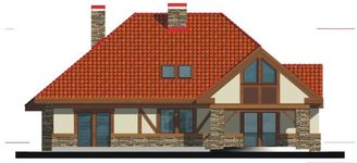 Graficzne opracowanie rzutów poglądowych widocznych na karcie projektu zostało wykonane przez Extradom.pl. Prezentowane przez Extradom.pl wizualizacje wykonane zostały przez autora projektu i należy poczytywać je jedynie za przykład i propozycję wykończenia, wizję architektoniczną autora projektu. Ostateczne wykończenie budynku może nastąpić na wiele sposobów. Szczegółowe rozwiązania zastosowane w oferowanej dokumentacji - w tym również ilość, lokalizacje i wygląd okien, drzwi, kominów - mogą w niewielkim stopniu różnić się od prezentowanej wizualizacji budynku.