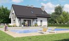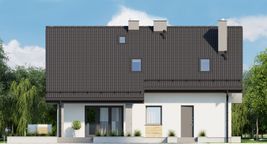Graficzne opracowanie rzutów poglądowych widocznych na karcie projektu zostało wykonane przez Extradom.pl. Prezentowane przez Extradom.pl wizualizacje wykonane zostały przez autora projektu i należy poczytywać je jedynie za przykład i propozycję wykończenia, wizję architektoniczną autora projektu. Ostateczne wykończenie budynku może nastąpić na wiele sposobów. Szczegółowe rozwiązania zastosowane w oferowanej dokumentacji - w tym również ilość, lokalizacje i wygląd okien, drzwi, kominów - mogą w niewielkim stopniu różnić się od prezentowanej wizualizacji budynku.