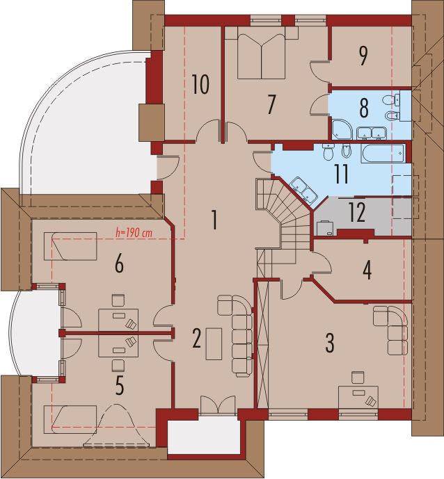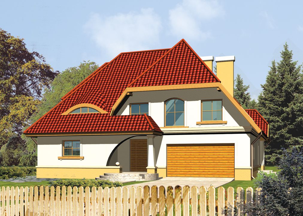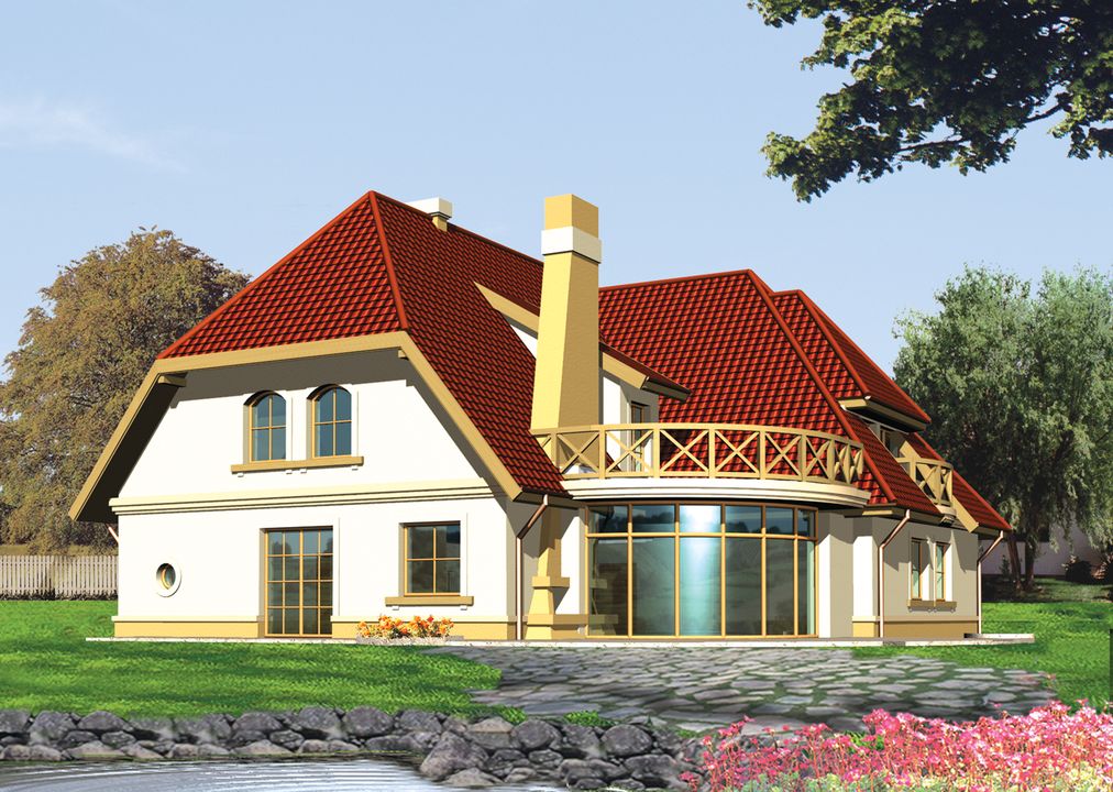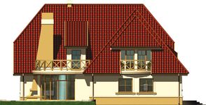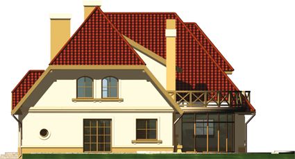 Graficzne opracowanie rzutów poglądowych widocznych na karcie projektu zostało wykonane przez Extradom.pl. Prezentowane przez Extradom.pl wizualizacje wykonane zostały przez autora projektu i należy poczytywać je jedynie za przykład i propozycję wykończenia, wizję architektoniczną autora projektu. Ostateczne wykończenie budynku może nastąpić na wiele sposobów. Szczegółowe rozwiązania zastosowane w oferowanej dokumentacji - w tym również ilość, lokalizacje i wygląd okien, drzwi, kominów - mogą w niewielkim stopniu różnić się od prezentowanej wizualizacji budynku.