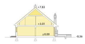 Graficzne opracowanie rzutów poglądowych widocznych na karcie projektu zostało wykonane przez Extradom.pl. Prezentowane przez Extradom.pl wizualizacje wykonane zostały przez autora projektu i należy poczytywać je jedynie za przykład i propozycję wykończenia, wizję architektoniczną autora projektu. Ostateczne wykończenie budynku może nastąpić na wiele sposobów. Szczegółowe rozwiązania zastosowane w oferowanej dokumentacji - w tym również ilość, lokalizacje i wygląd okien, drzwi, kominów - mogą w niewielkim stopniu różnić się od prezentowanej wizualizacji budynku.