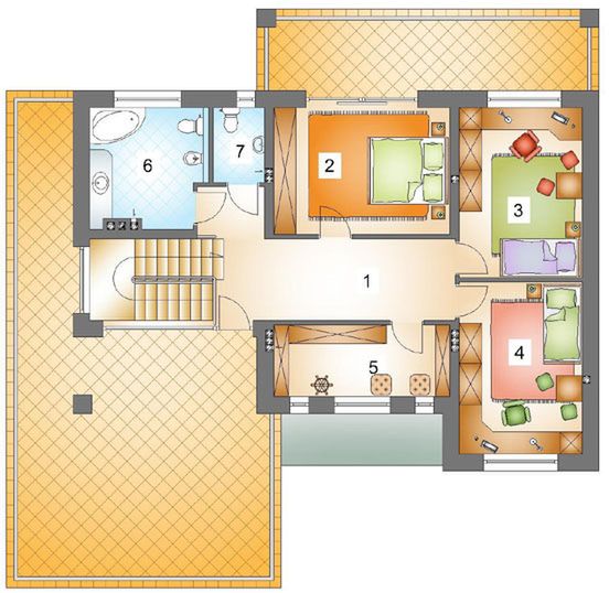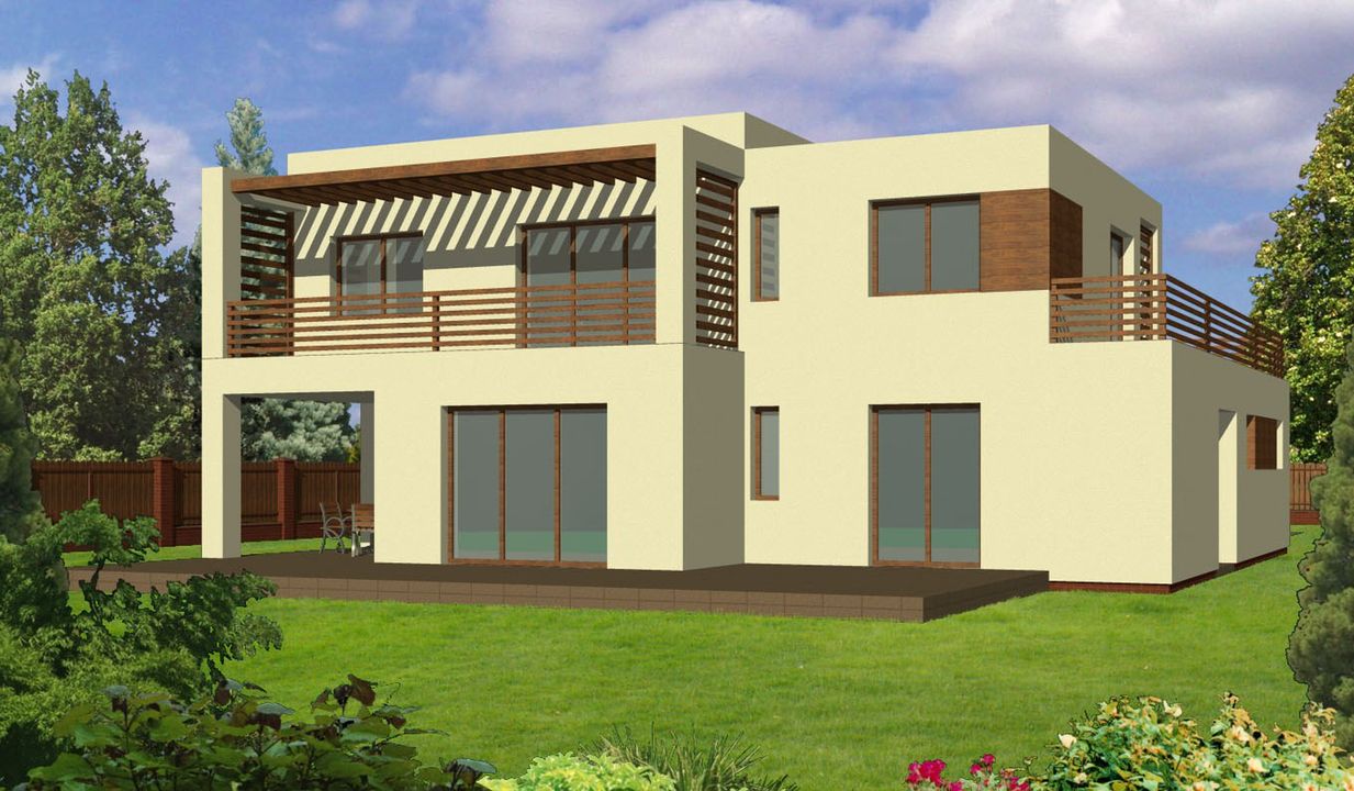 Graficzne opracowanie rzutów poglądowych widocznych na karcie projektu zostało wykonane przez Extradom.pl. Prezentowane przez Extradom.pl wizualizacje wykonane zostały przez autora projektu i należy poczytywać je jedynie za przykład i propozycję wykończenia, wizję architektoniczną autora projektu. Ostateczne wykończenie budynku może nastąpić na wiele sposobów. Szczegółowe rozwiązania zastosowane w oferowanej dokumentacji - w tym również ilość, lokalizacje i wygląd okien, drzwi, kominów - mogą w niewielkim stopniu różnić się od prezentowanej wizualizacji budynku.