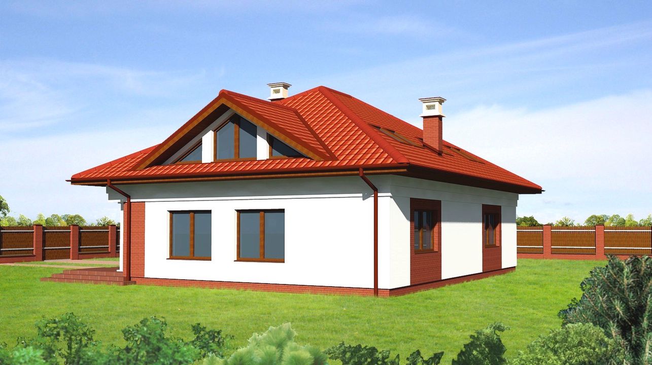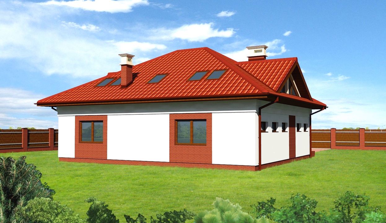 Graficzne opracowanie rzutów poglądowych widocznych na karcie projektu zostało wykonane przez Extradom.pl. Prezentowane przez Extradom.pl wizualizacje wykonane zostały przez autora projektu i należy poczytywać je jedynie za przykład i propozycję wykończenia, wizję architektoniczną autora projektu. Ostateczne wykończenie budynku może nastąpić na wiele sposobów. Szczegółowe rozwiązania zastosowane w oferowanej dokumentacji - w tym również ilość, lokalizacje i wygląd okien, drzwi, kominów - mogą w niewielkim stopniu różnić się od prezentowanej wizualizacji budynku.