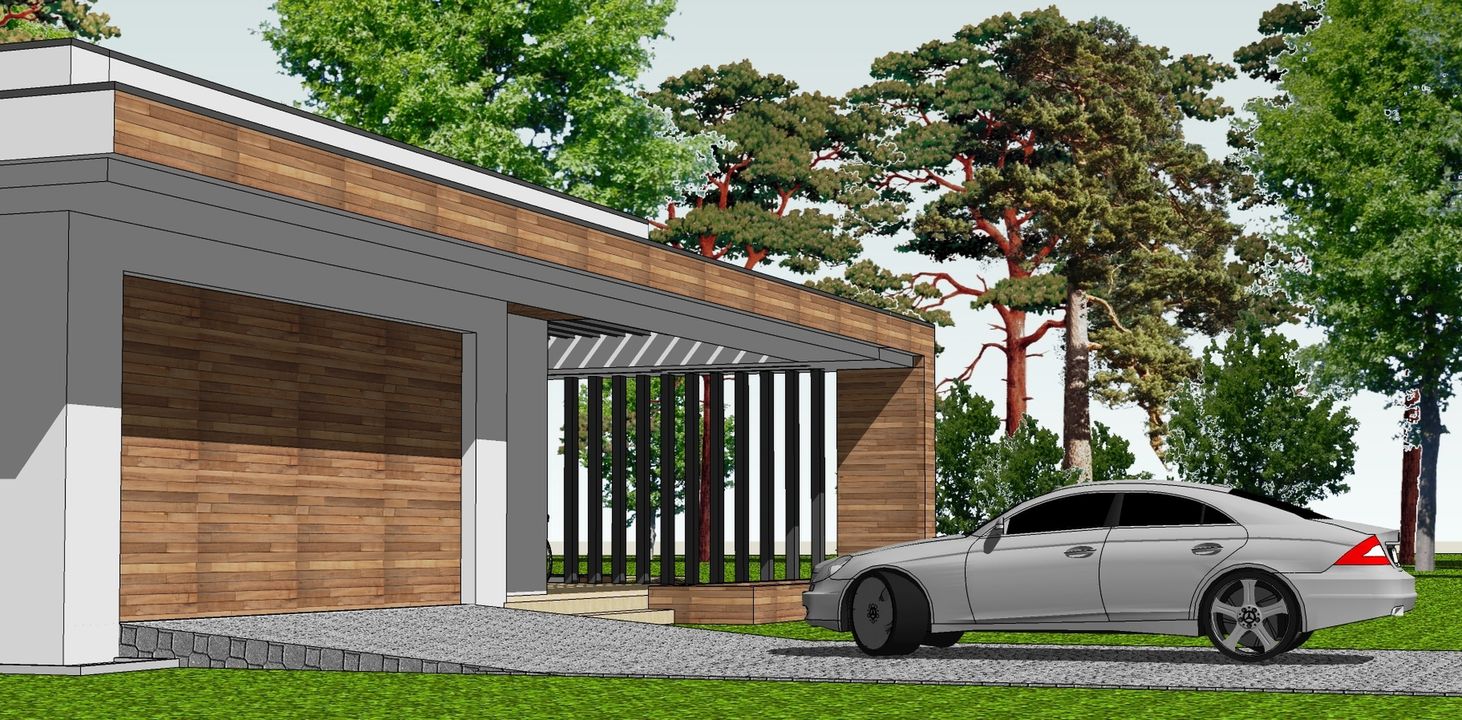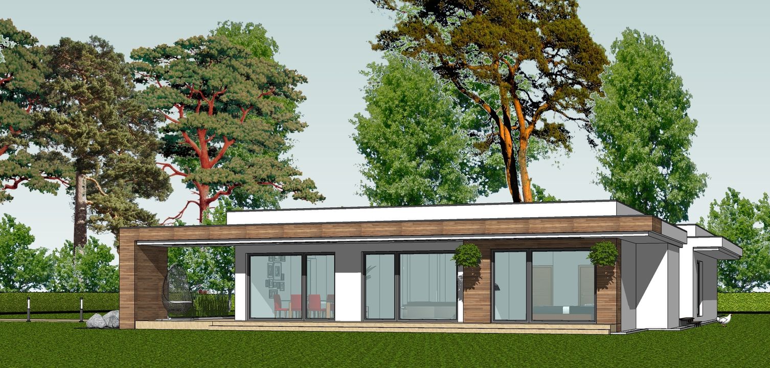 Graficzne opracowanie rzutów poglądowych widocznych na karcie projektu zostało wykonane przez Extradom.pl. Prezentowane przez Extradom.pl wizualizacje wykonane zostały przez autora projektu i należy poczytywać je jedynie za przykład i propozycję wykończenia, wizję architektoniczną autora projektu. Ostateczne wykończenie budynku może nastąpić na wiele sposobów. Szczegółowe rozwiązania zastosowane w oferowanej dokumentacji - w tym również ilość, lokalizacje i wygląd okien, drzwi, kominów - mogą w niewielkim stopniu różnić się od prezentowanej wizualizacji budynku.