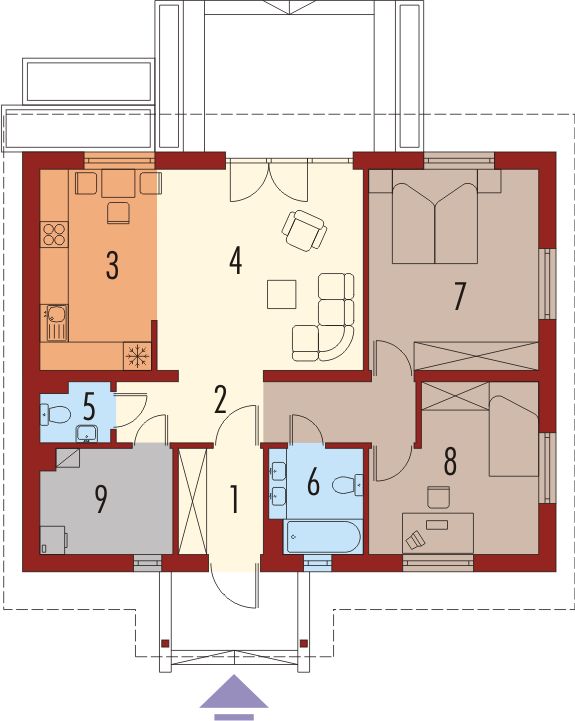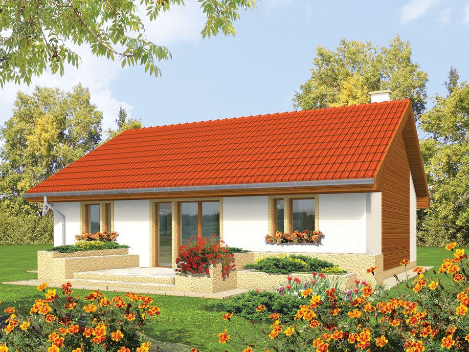 Graficzne opracowanie rzutów poglądowych widocznych na karcie projektu zostało wykonane przez Extradom.pl. Prezentowane przez Extradom.pl wizualizacje wykonane zostały przez autora projektu i należy poczytywać je jedynie za przykład i propozycję wykończenia, wizję architektoniczną autora projektu. Ostateczne wykończenie budynku może nastąpić na wiele sposobów. Szczegółowe rozwiązania zastosowane w oferowanej dokumentacji - w tym również ilość, lokalizacje i wygląd okien, drzwi, kominów - mogą w niewielkim stopniu różnić się od prezentowanej wizualizacji budynku.