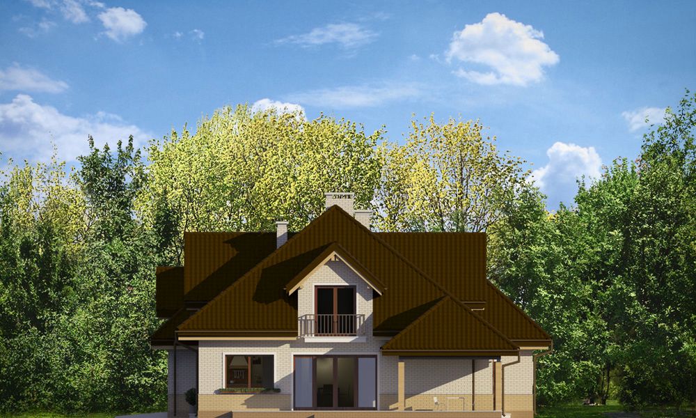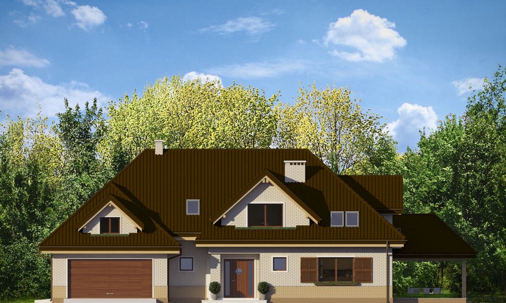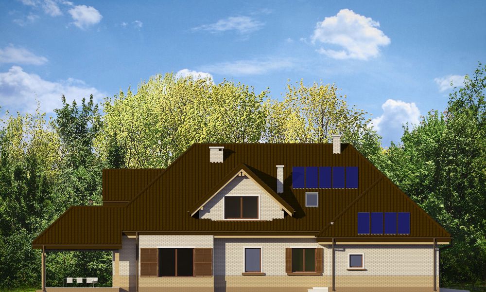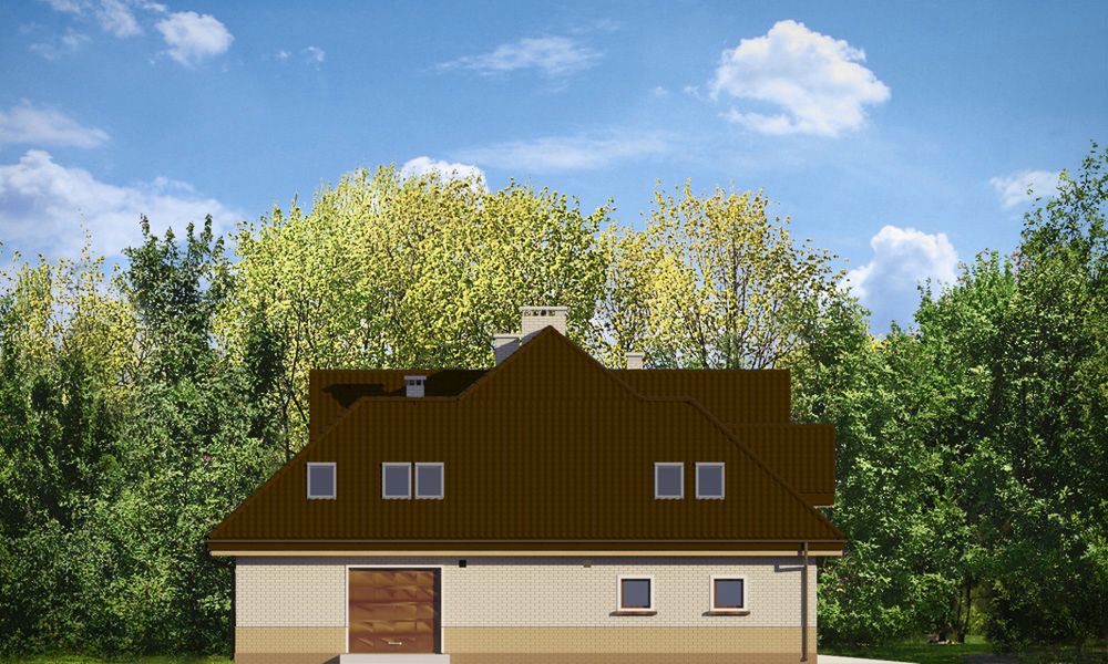 Graficzne opracowanie rzutów poglądowych widocznych na karcie projektu zostało wykonane przez Extradom.pl. Prezentowane przez Extradom.pl wizualizacje wykonane zostały przez autora projektu i należy poczytywać je jedynie za przykład i propozycję wykończenia, wizję architektoniczną autora projektu. Ostateczne wykończenie budynku może nastąpić na wiele sposobów. Szczegółowe rozwiązania zastosowane w oferowanej dokumentacji - w tym również ilość, lokalizacje i wygląd okien, drzwi, kominów - mogą w niewielkim stopniu różnić się od prezentowanej wizualizacji budynku.