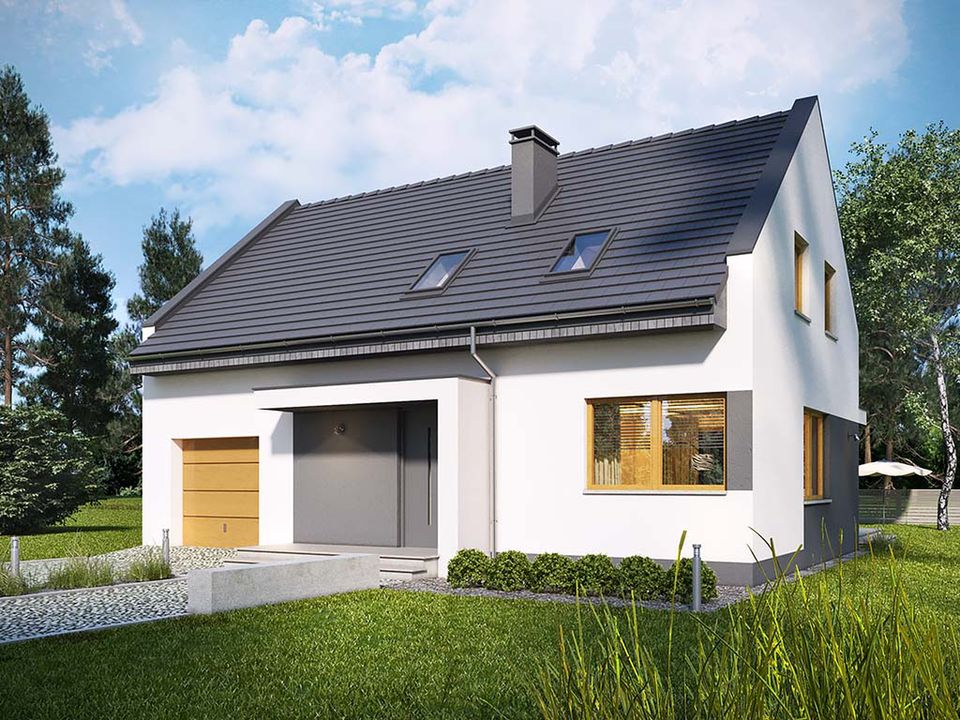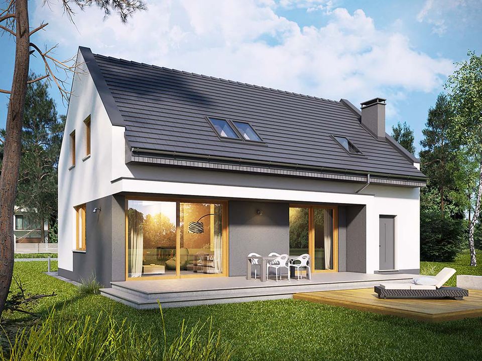 Konstrukcja budynku to ściany zaprojektowane z bloczków z betonu komórkowego z dociepleniem, strop gęstożebrowy Teriva oraz prosty dach dwuspadowy o drewnianej konstrukcji pokryty dachówką cementową lub ceramiczną. Elewacje są w całości otynkowane. Można dowolnie zmieniać materiały i wprowadzać korekty do projektu na etapie adaptacji - zgodę wydajemy na nie całkowicie bezpłatnie.