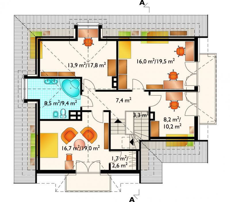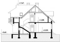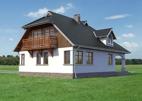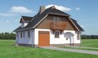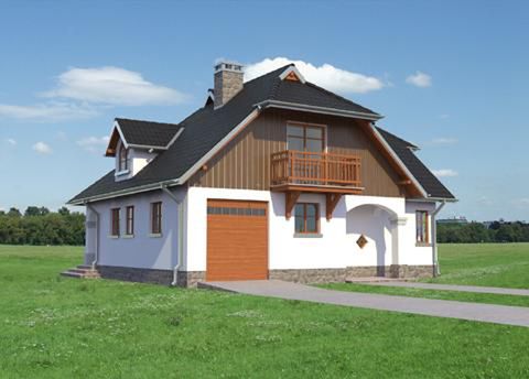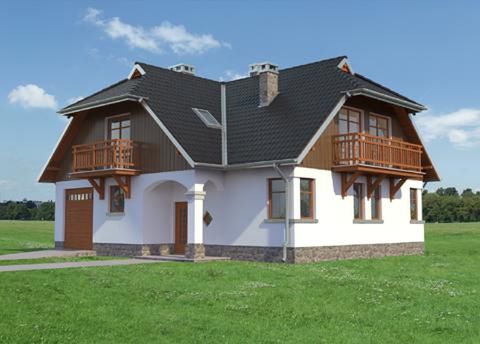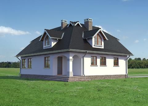 Graficzne opracowanie rzutów poglądowych widocznych na karcie projektu zostało wykonane przez Extradom.pl. Prezentowane przez Extradom.pl wizualizacje wykonane zostały przez autora projektu i należy poczytywać je jedynie za przykład i propozycję wykończenia, wizję architektoniczną autora projektu. Ostateczne wykończenie budynku może nastąpić na wiele sposobów. Szczegółowe rozwiązania zastosowane w oferowanej dokumentacji - w tym również ilość, lokalizacje i wygląd okien, drzwi, kominów - mogą w niewielkim stopniu różnić się od prezentowanej wizualizacji budynku.