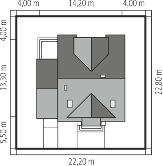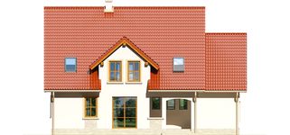 Graficzne opracowanie rzutów poglądowych widocznych na karcie projektu zostało wykonane przez Extradom.pl. Prezentowane przez Extradom.pl wizualizacje wykonane zostały przez autora projektu i należy poczytywać je jedynie za przykład i propozycję wykończenia, wizję architektoniczną autora projektu. Ostateczne wykończenie budynku może nastąpić na wiele sposobów. Szczegółowe rozwiązania zastosowane w oferowanej dokumentacji - w tym również ilość, lokalizacje i wygląd okien, drzwi, kominów - mogą w niewielkim stopniu różnić się od prezentowanej wizualizacji budynku.