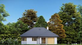 Graficzne opracowanie rzutów poglądowych widocznych na karcie projektu zostało wykonane przez Extradom.pl. Prezentowane przez Extradom.pl wizualizacje wykonane zostały przez autora projektu i należy poczytywać je jedynie za przykład i propozycję wykończenia, wizję architektoniczną autora projektu. Ostateczne wykończenie budynku może nastąpić na wiele sposobów. Szczegółowe rozwiązania zastosowane w oferowanej dokumentacji - w tym również ilość, lokalizacje i wygląd okien, drzwi, kominów - mogą w niewielkim stopniu różnić się od prezentowanej wizualizacji budynku.