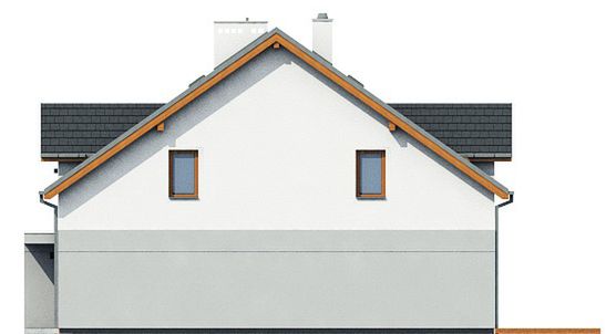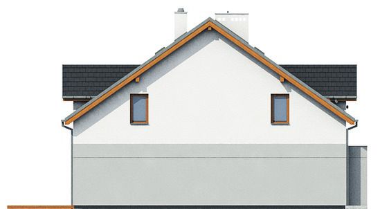 Graficzne opracowanie rzutów poglądowych widocznych na karcie projektu zostało wykonane przez Extradom.pl. Prezentowane przez Extradom.pl wizualizacje wykonane zostały przez autora projektu i należy poczytywać je jedynie za przykład i propozycję wykończenia, wizję architektoniczną autora projektu. Ostateczne wykończenie budynku może nastąpić na wiele sposobów. Szczegółowe rozwiązania zastosowane w oferowanej dokumentacji - w tym również ilość, lokalizacje i wygląd okien, drzwi, kominów - mogą w niewielkim stopniu różnić się od prezentowanej wizualizacji budynku.