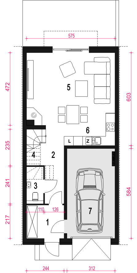 Jukka z garażem 1-st. szeregówka [A-SZ] WRF1976