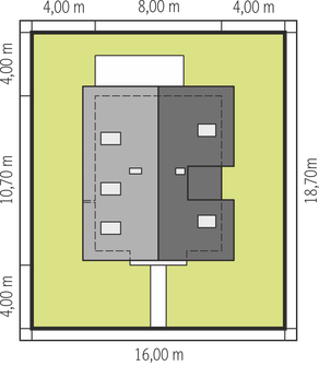 Graficzne opracowanie rzutów poglądowych widocznych na karcie projektu zostało wykonane przez Extradom.pl. Prezentowane przez Extradom.pl wizualizacje wykonane zostały przez autora projektu i należy poczytywać je jedynie za przykład i propozycję wykończenia, wizję architektoniczną autora projektu. Ostateczne wykończenie budynku może nastąpić na wiele sposobów. Szczegółowe rozwiązania zastosowane w oferowanej dokumentacji - w tym również ilość, lokalizacje i wygląd okien, drzwi, kominów - mogą w niewielkim stopniu różnić się od prezentowanej wizualizacji budynku.