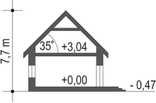 Graficzne opracowanie rzutów poglądowych widocznych na karcie projektu zostało wykonane przez Extradom.pl. Prezentowane przez Extradom.pl wizualizacje wykonane zostały przez autora projektu i należy poczytywać je jedynie za przykład i propozycję wykończenia, wizję architektoniczną autora projektu. Ostateczne wykończenie budynku może nastąpić na wiele sposobów. Szczegółowe rozwiązania zastosowane w oferowanej dokumentacji - w tym również ilość, lokalizacje i wygląd okien, drzwi, kominów - mogą w niewielkim stopniu różnić się od prezentowanej wizualizacji budynku.