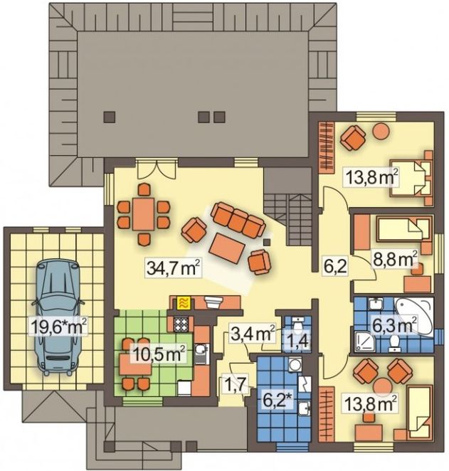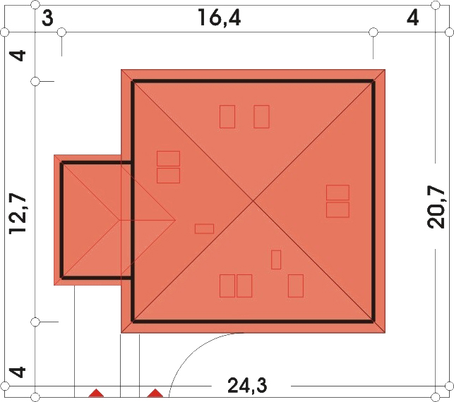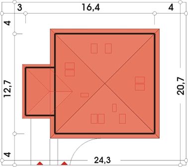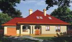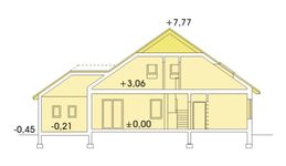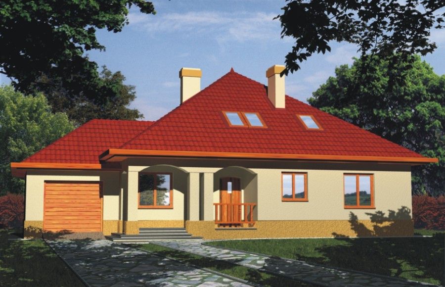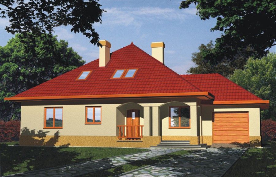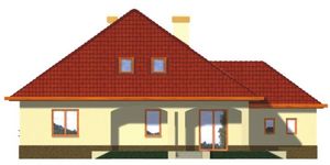 Graficzne opracowanie rzutów poglądowych widocznych na karcie projektu zostało wykonane przez Extradom.pl. Prezentowane przez Extradom.pl wizualizacje wykonane zostały przez autora projektu i należy poczytywać je jedynie za przykład i propozycję wykończenia, wizję architektoniczną autora projektu. Ostateczne wykończenie budynku może nastąpić na wiele sposobów. Szczegółowe rozwiązania zastosowane w oferowanej dokumentacji - w tym również ilość, lokalizacje i wygląd okien, drzwi, kominów - mogą w niewielkim stopniu różnić się od prezentowanej wizualizacji budynku.