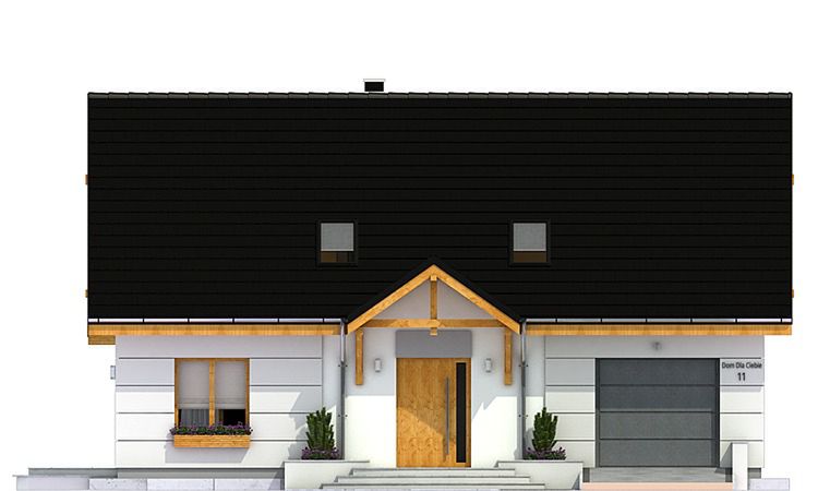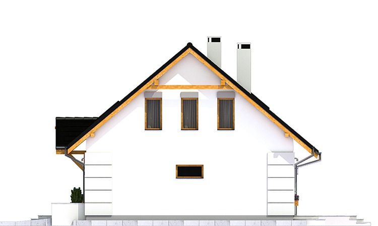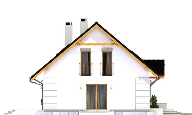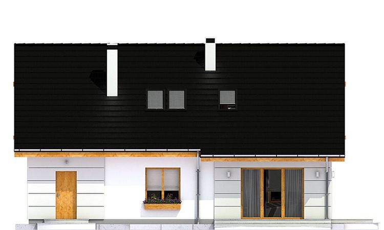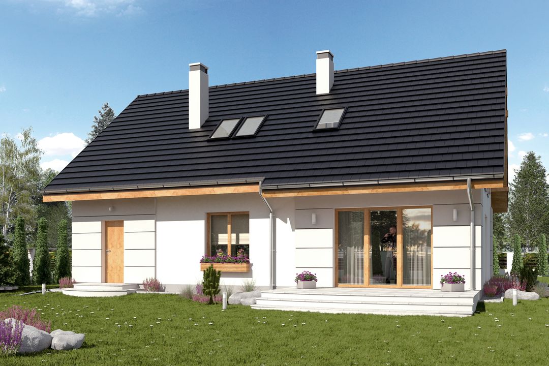 Graficzne opracowanie rzutów poglądowych widocznych na karcie projektu zostało wykonane przez Extradom.pl. Prezentowane przez Extradom.pl wizualizacje wykonane zostały przez autora projektu i należy poczytywać je jedynie za przykład i propozycję wykończenia, wizję architektoniczną autora projektu. Ostateczne wykończenie budynku może nastąpić na wiele sposobów. Szczegółowe rozwiązania zastosowane w oferowanej dokumentacji - w tym również ilość, lokalizacje i wygląd okien, drzwi, kominów - mogą w niewielkim stopniu różnić się od prezentowanej wizualizacji budynku.