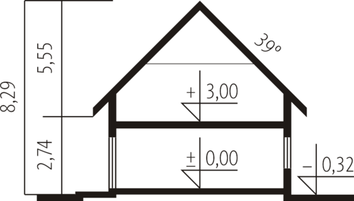 Budynek zaprojektowano w technologii murowej ze stropem gęstożebrowym. Dach o konstrukcji drewnianej pokryto dachówką cementową lub ceramiczną. Elewację wykonano z tynku strukturalnego oraz licówki klinkierowej. Stolarka okienna drewniana. Okna połaciowe.